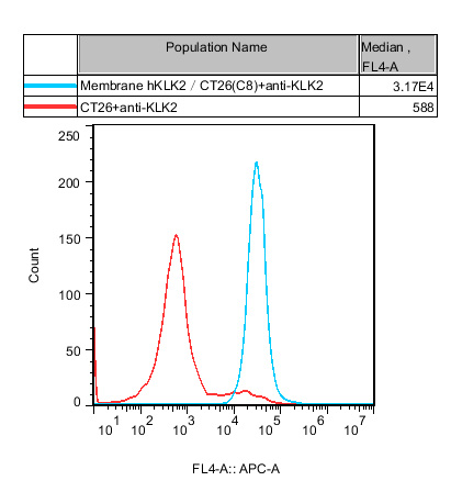IV. Representative Data![]() Figure 1. Recombinant Membrane hKLK2/CT26 stably expressing KLK2.  |