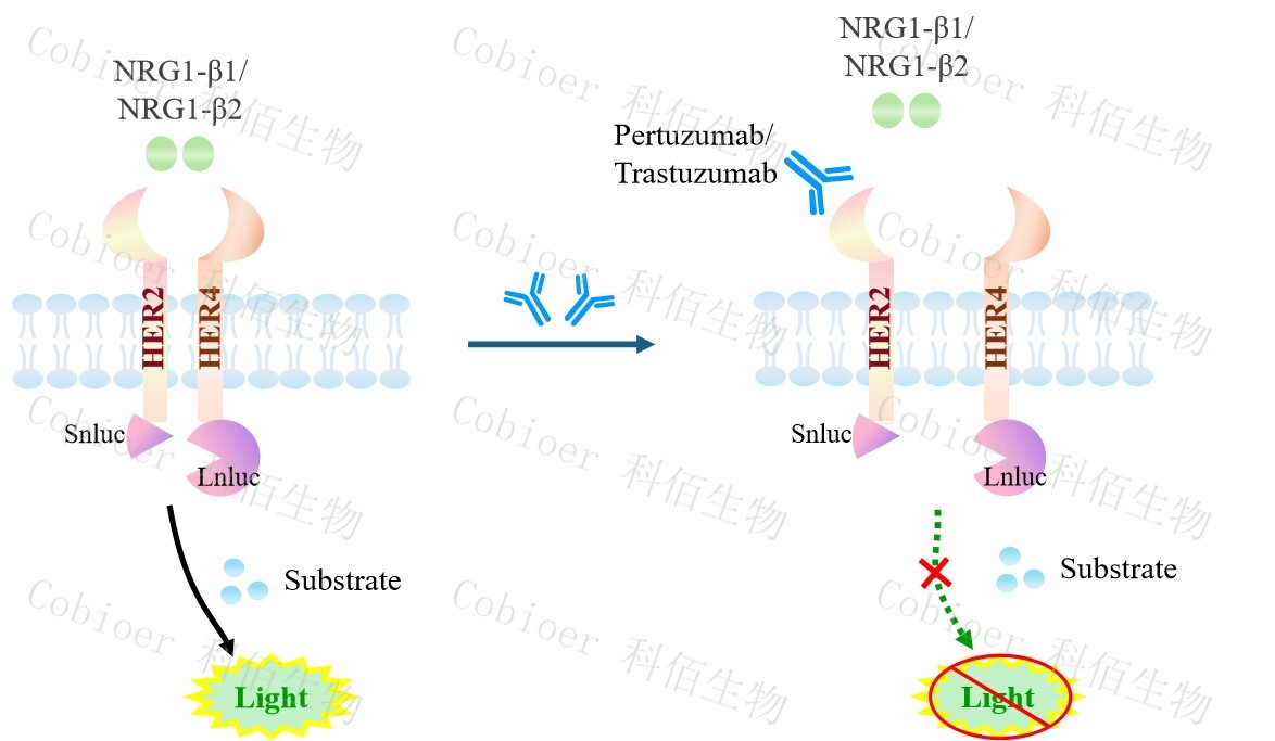 ERBB2&ERBB4 Dimerization CHO 報(bào)告基因藥靶模型很好的模擬了體 內(nèi) ERBB2&ERBB4 的信號(hào)轉(zhuǎn)導(dǎo)過(guò)程,原理見(jiàn)圖所示。![]() Figure 1. ERBB2&ERBB4 Dimerization CHO 細(xì)胞模型原理圖  |