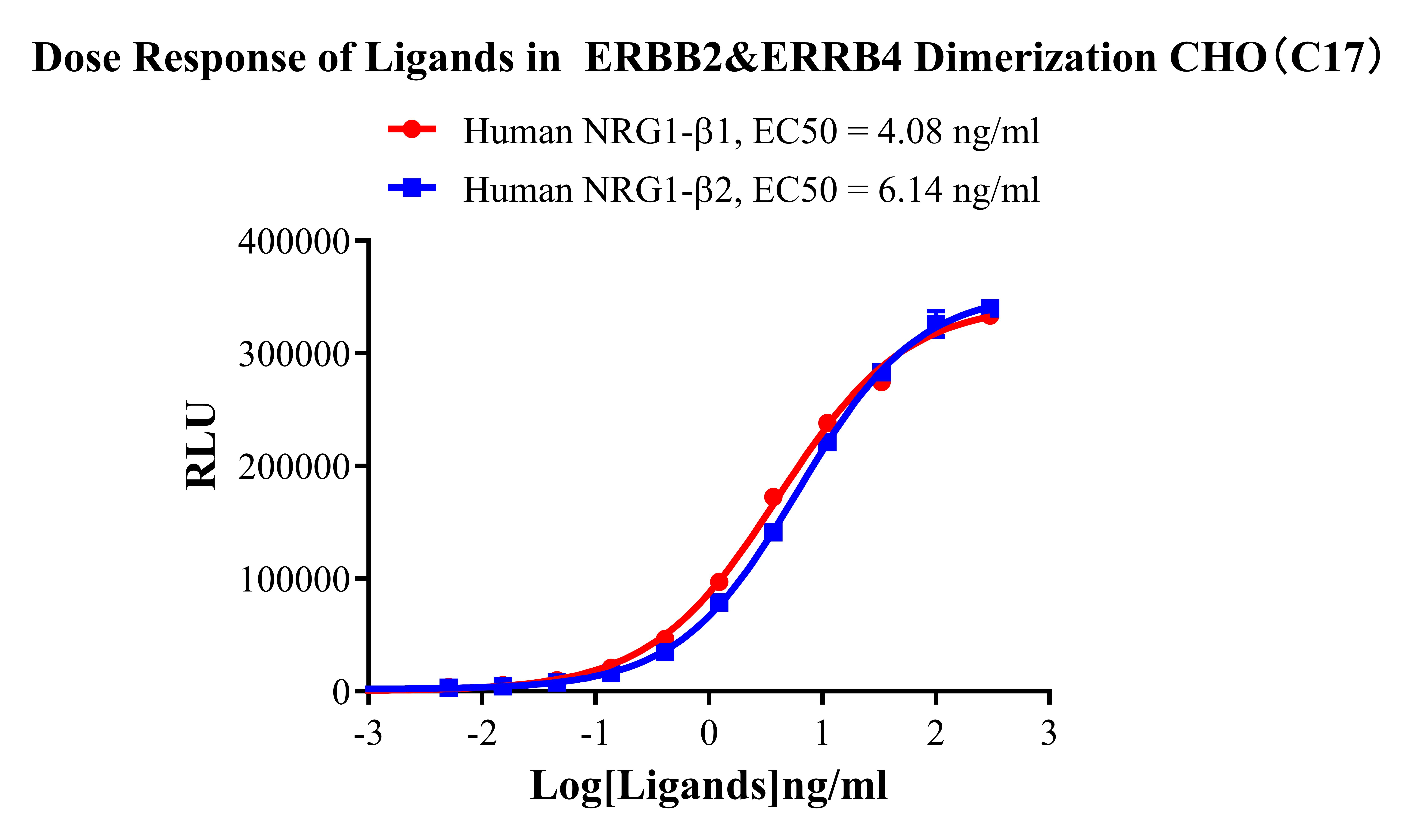 ![]() Figure 2. Recombinant ERBB2&ERBB4 Dimerization CHO stably expressing ERBB2&ERBB4. ![]() Figure 3. Dose Response of Ligands in ERBB2&ERRB4 Dimerization CHO(C17).  |