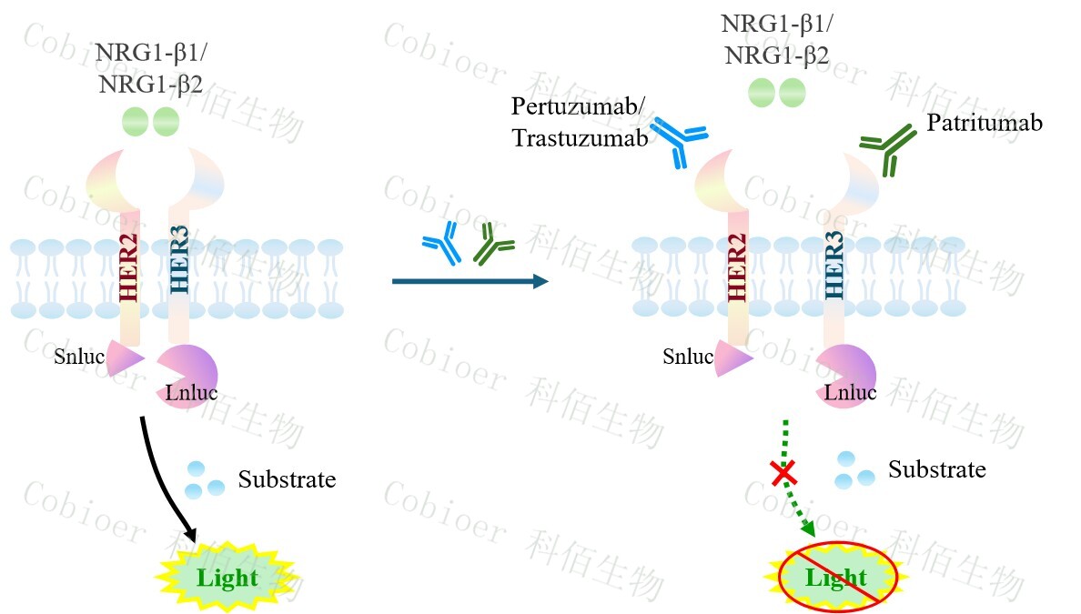 ERBB2&ERBB3 Dimerization CHO 報(bào)告基因藥靶模型很好的模擬了體內(nèi) ERBB2&ERBB3 的信號(hào)轉(zhuǎn)導(dǎo)過(guò)程,原理見(jiàn)圖所示。![]() Figure 1. ERBB2&ERBB3 Dimerization CHO 細(xì)胞模型原理圖  |