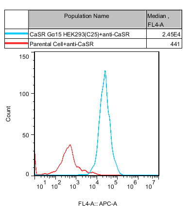 CaSR Gα15 HEK293 藥靶模型很好的模擬了體內 CaSR 的信號轉導過程,原理見下圖所示。![]() Figure 1. CaSR Gα15 HEK293 細胞模型原理圖  |