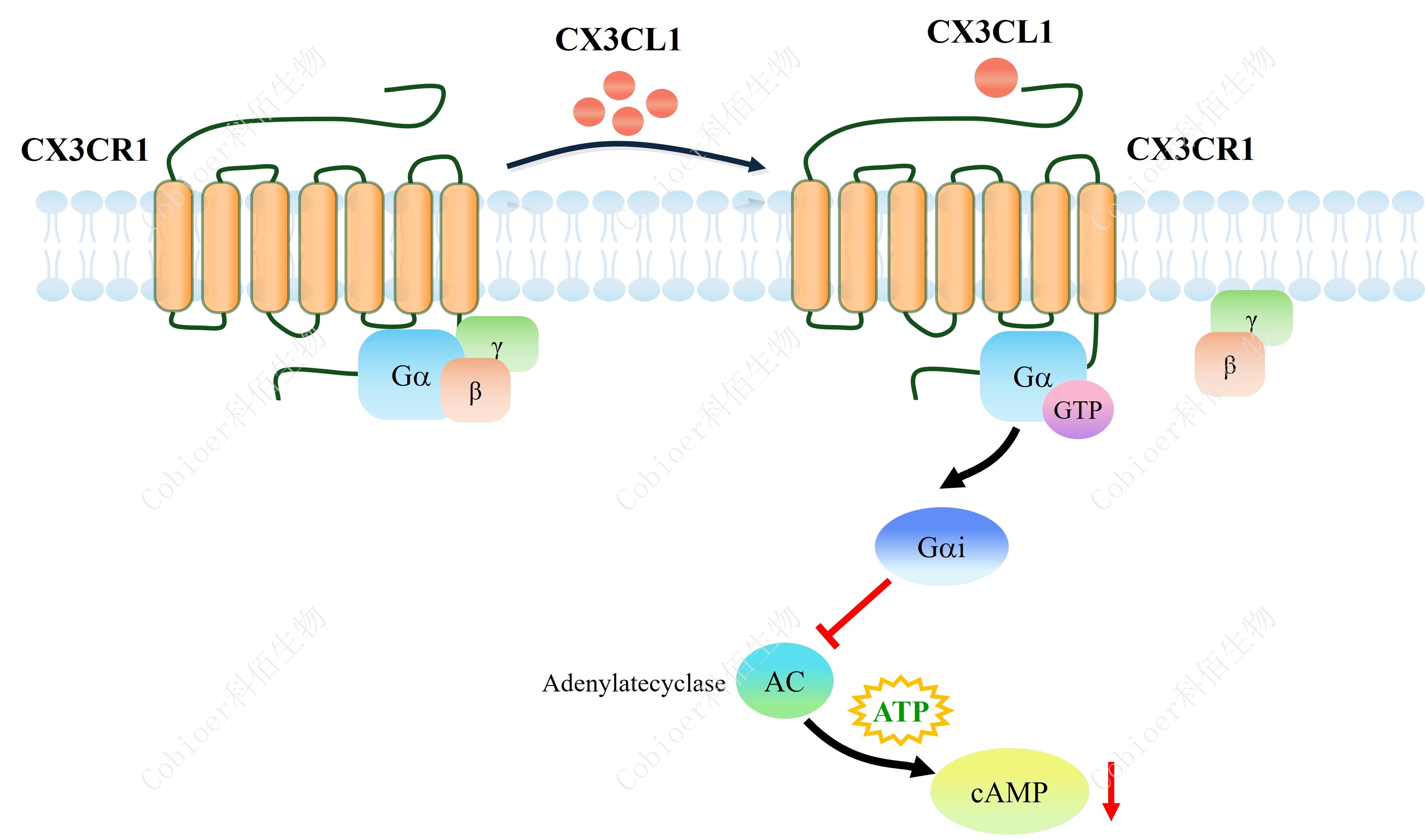 |       CX3C 基序趨化因子受體 1 (CX3CR1),也稱為分形因子受體或 G 蛋白偶聯(lián)受體 13 (GPR13),是 G 蛋白偶聯(lián)受體 1 (GPCR1) 家族的跨膜蛋白,也是 CX3C 趨化因子受體亞 家族中唯一已知的成員。它是一種高度選擇性的表面受體,通常在單核細(xì)胞、CD4 T 細(xì)胞、 CD8 T 細(xì)胞、NK 細(xì)胞和 γδ 細(xì)胞上表達(dá)。CX3CL1 是一種獨特的趨化因子,可與其唯一受體 CX3CR1結(jié)合。 CX3CR1-CX3CL1細(xì)胞內(nèi)信號級聯(lián)負(fù)責(zé)調(diào)節(jié)細(xì)胞活性,使其達(dá)到更高的活性狀態(tài),如存活、遷移和增殖等。  |