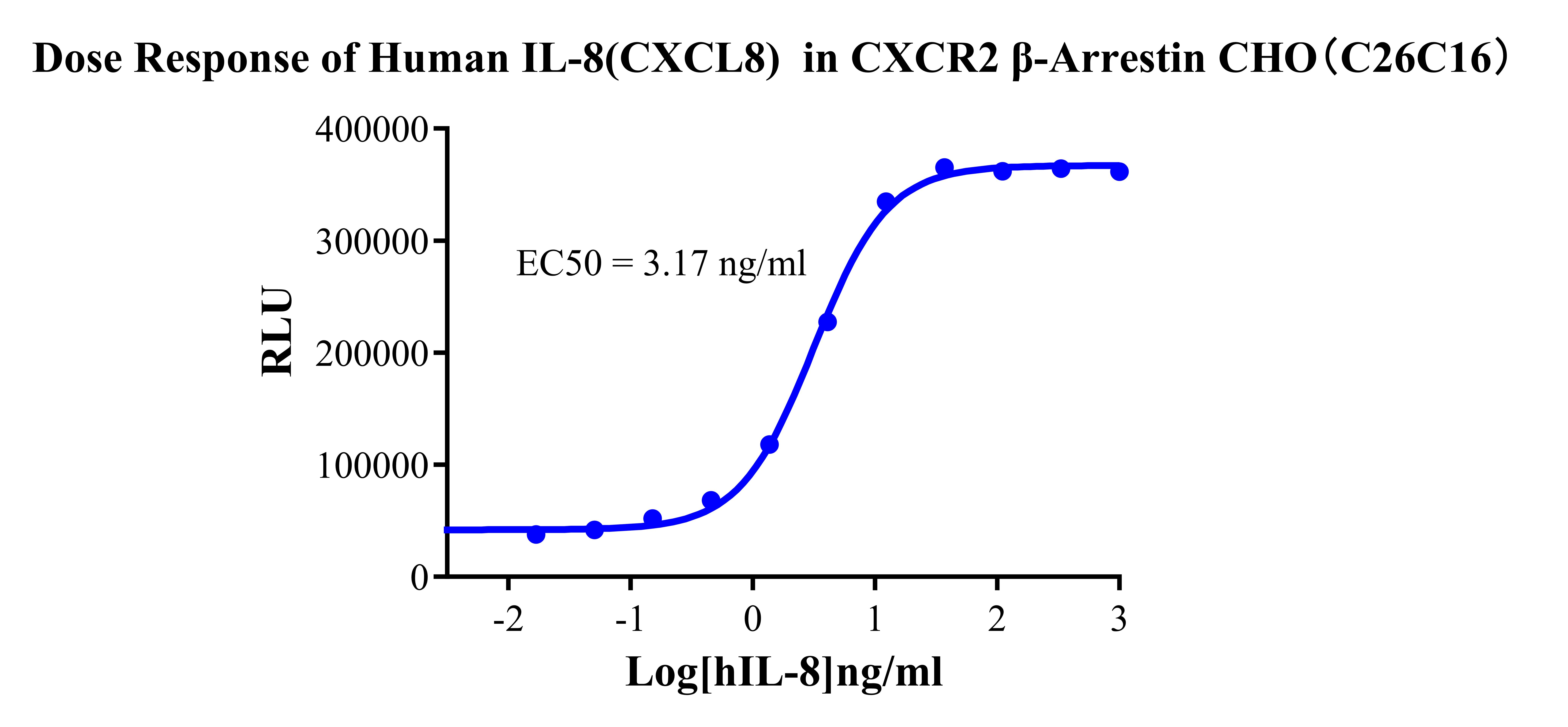 Figure 3.Dose response of Human IL-8(CXCL8) in CXCR2 β-Arrestin CHO (C26C16).  |