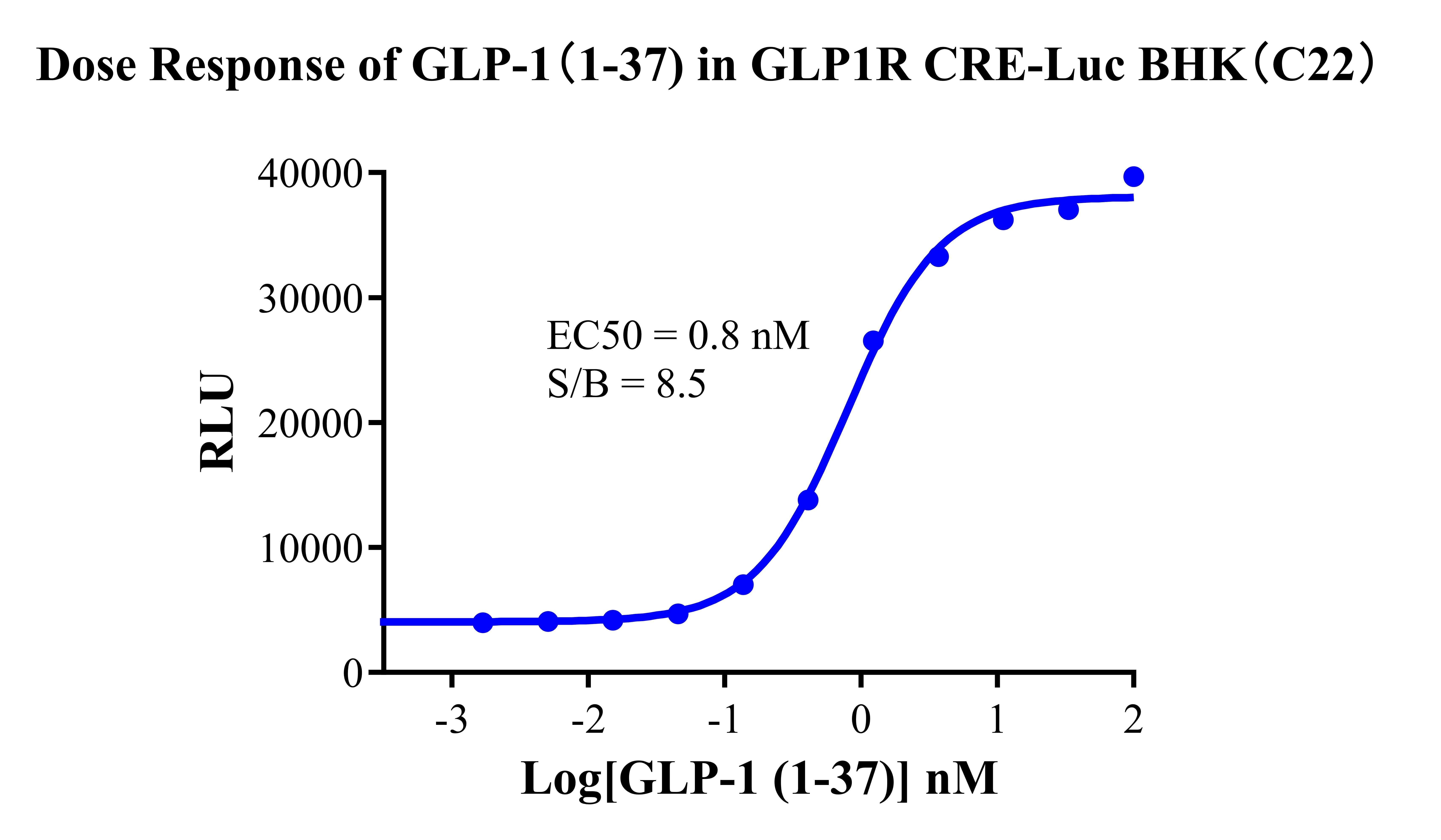 Figure 2.Dose response of GLP-1(1-37) in GLP1R CRE-Luc BHK Cell(C22).  |