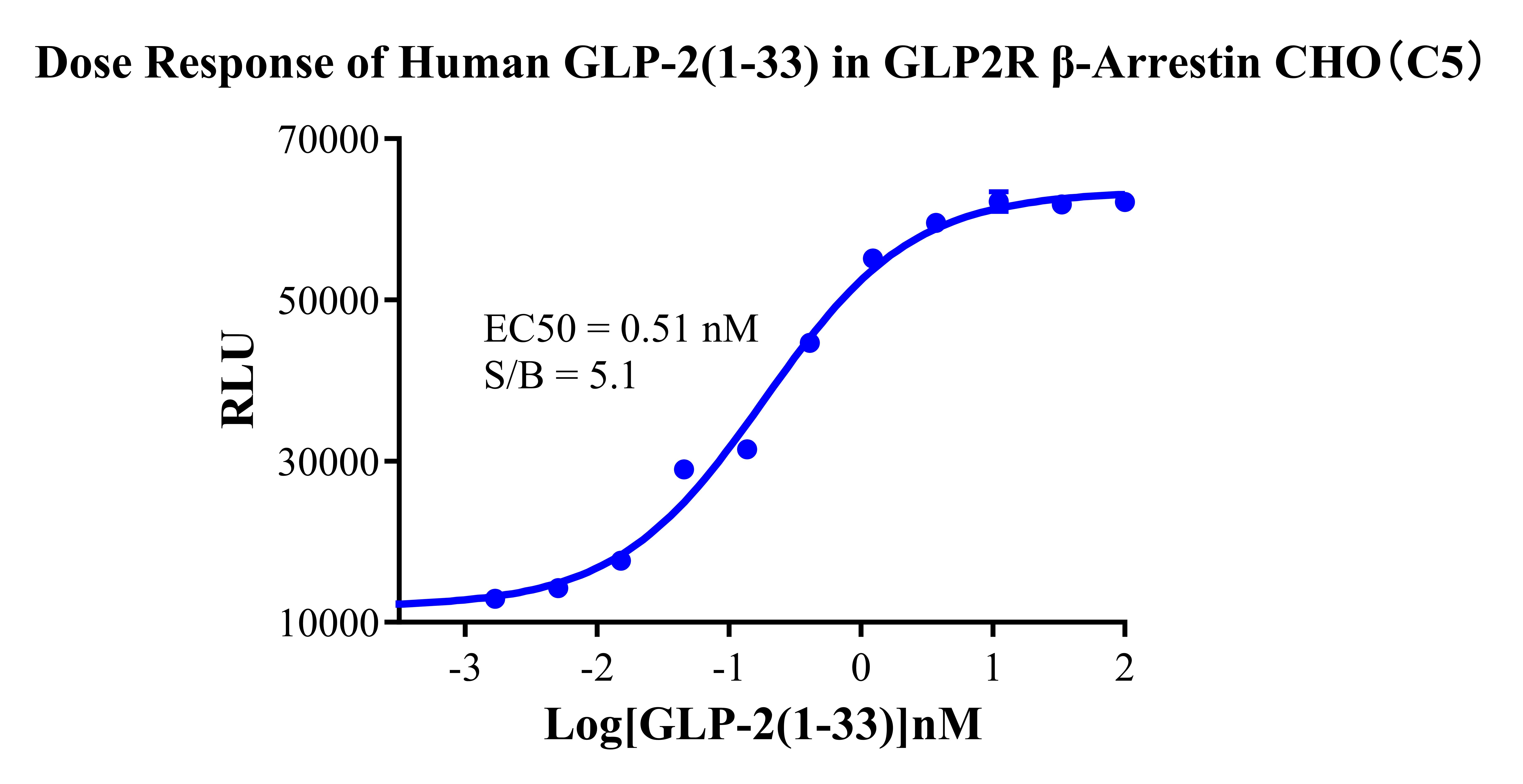 Figure 3. Dose response of Human GLP-2(1-33) in GLP2R β-Arrestin CHO-K1 Cell Line (C5).  |