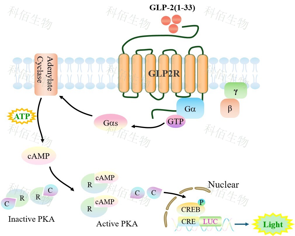 ![]() Figure 1. GLP2R CRE-Luc HEK293 細(xì)胞模型原理圖  |