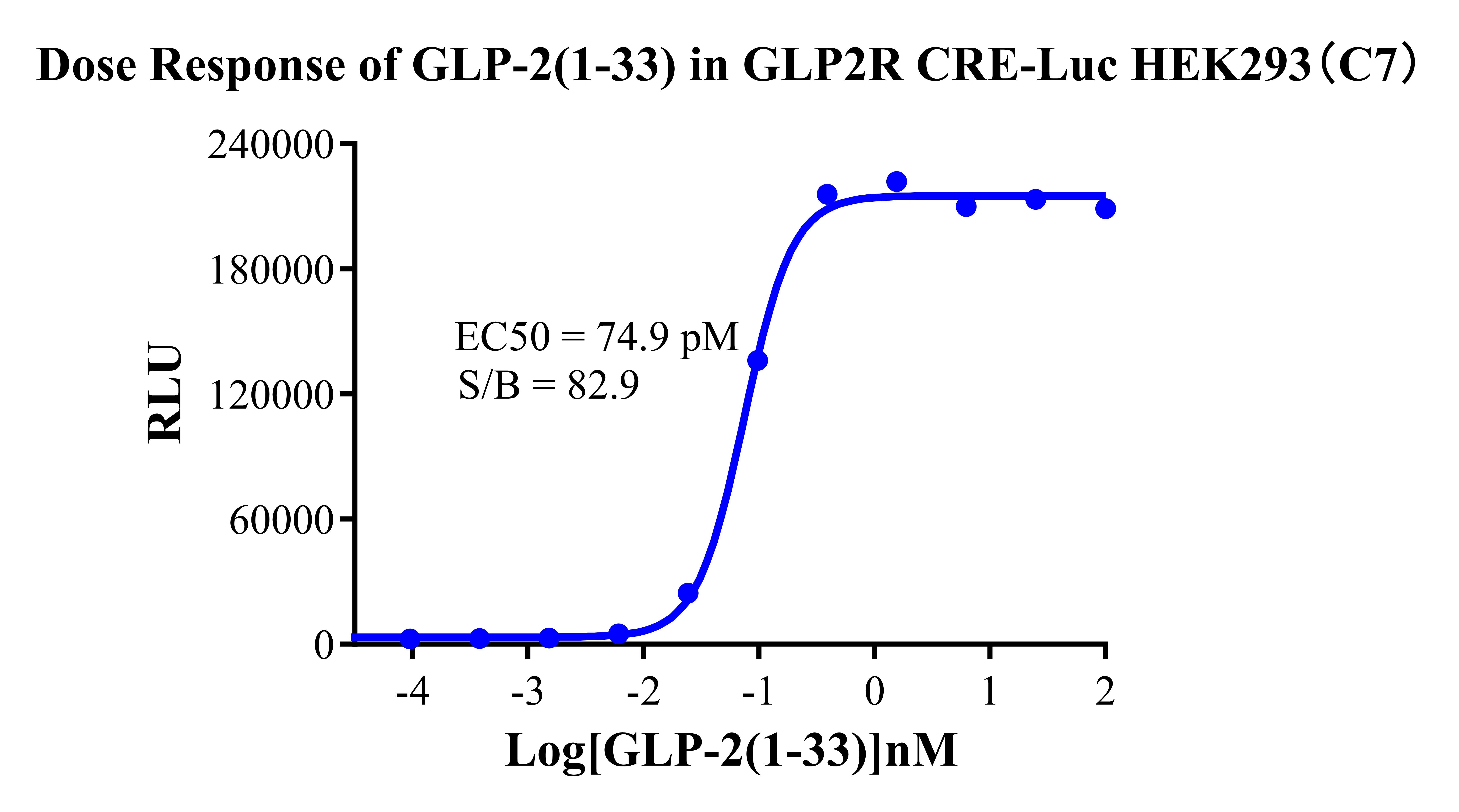 Figure 3. Dose response of GLP-2(1-33) (Human) in GLP2R CRE-Luc HEK293 Cells (C7).  |