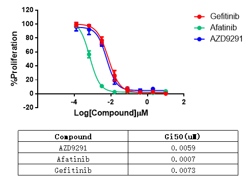 Figure 4. Anti-proliferation assay of three reference compounds on the EGFR Del19/BaF3 Stable Cell Line.  |
