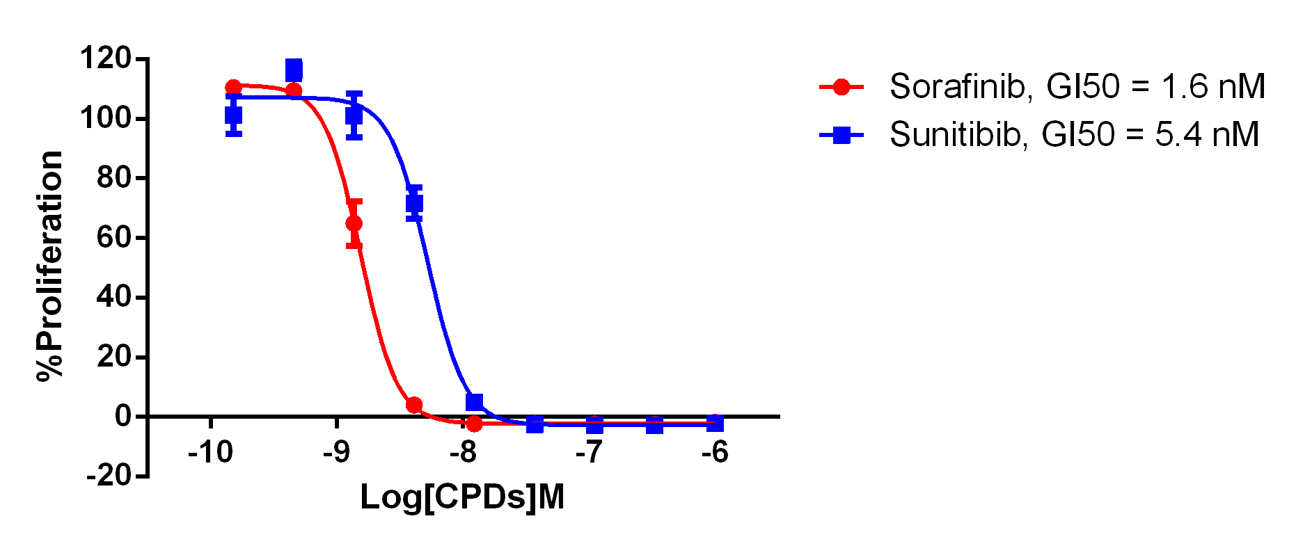 Figure . Anti-proliferation assay of two reference compounds on the FLT3-ITD/BaF3 Stable Cell Line  |
