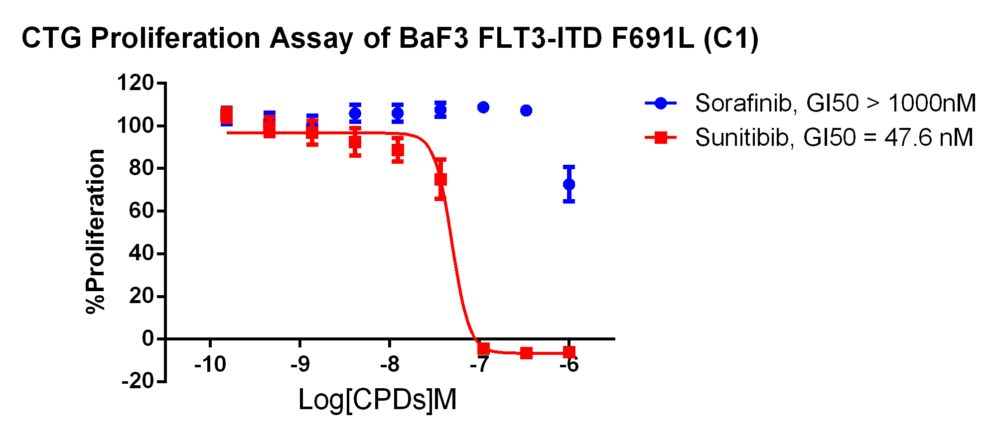 Figure 4. Anti-proliferation assay of two reference compounds on the FLT3-ITD [F691L]/BaF3 Stable Cell Line.
