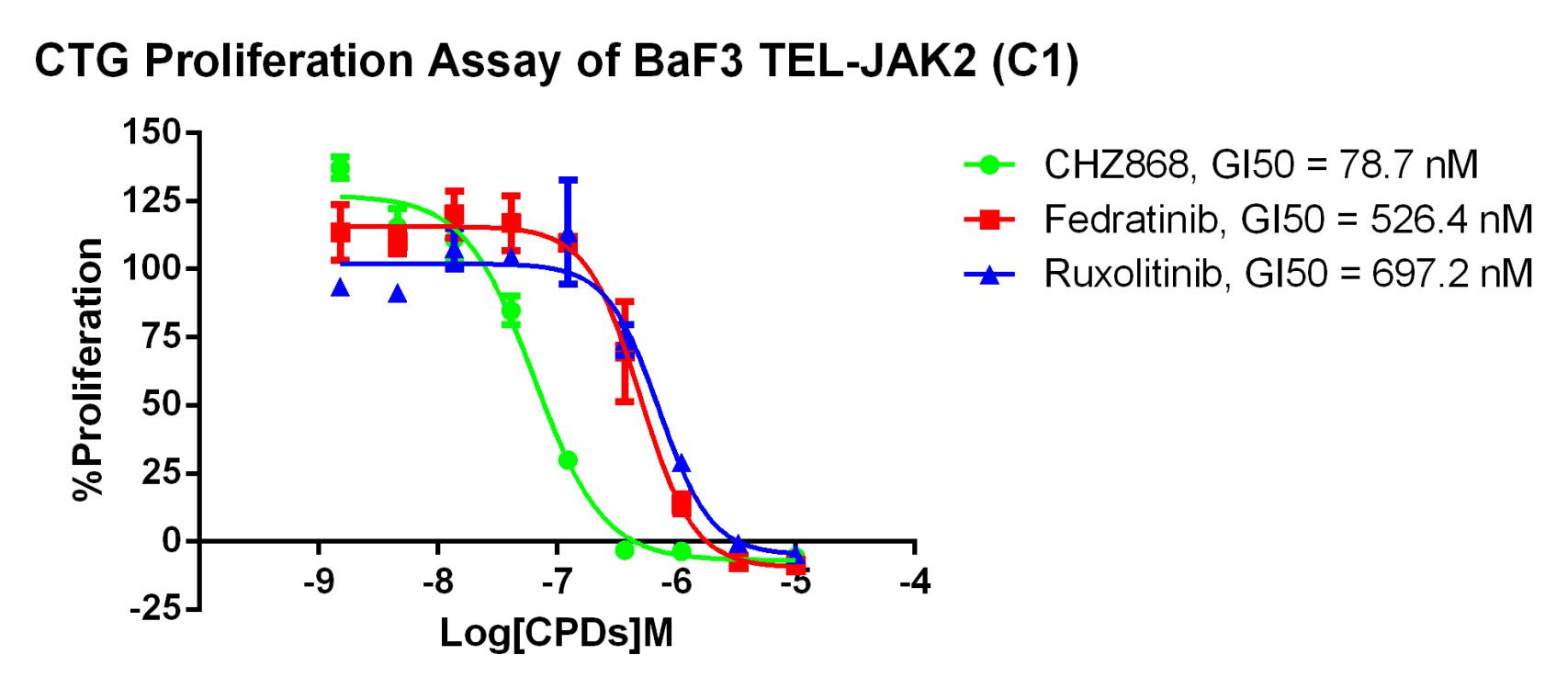 Figure 2. CTG Proliferation Assay of BaF3 TEL-JAK2 (C1).  |