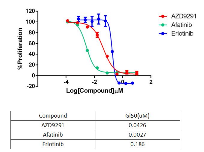 Figure 2. Anti-proliferation assay of three reference compounds on the EGFR WT (EGF Dependent)/BaF3 Stable Cell Line.  |