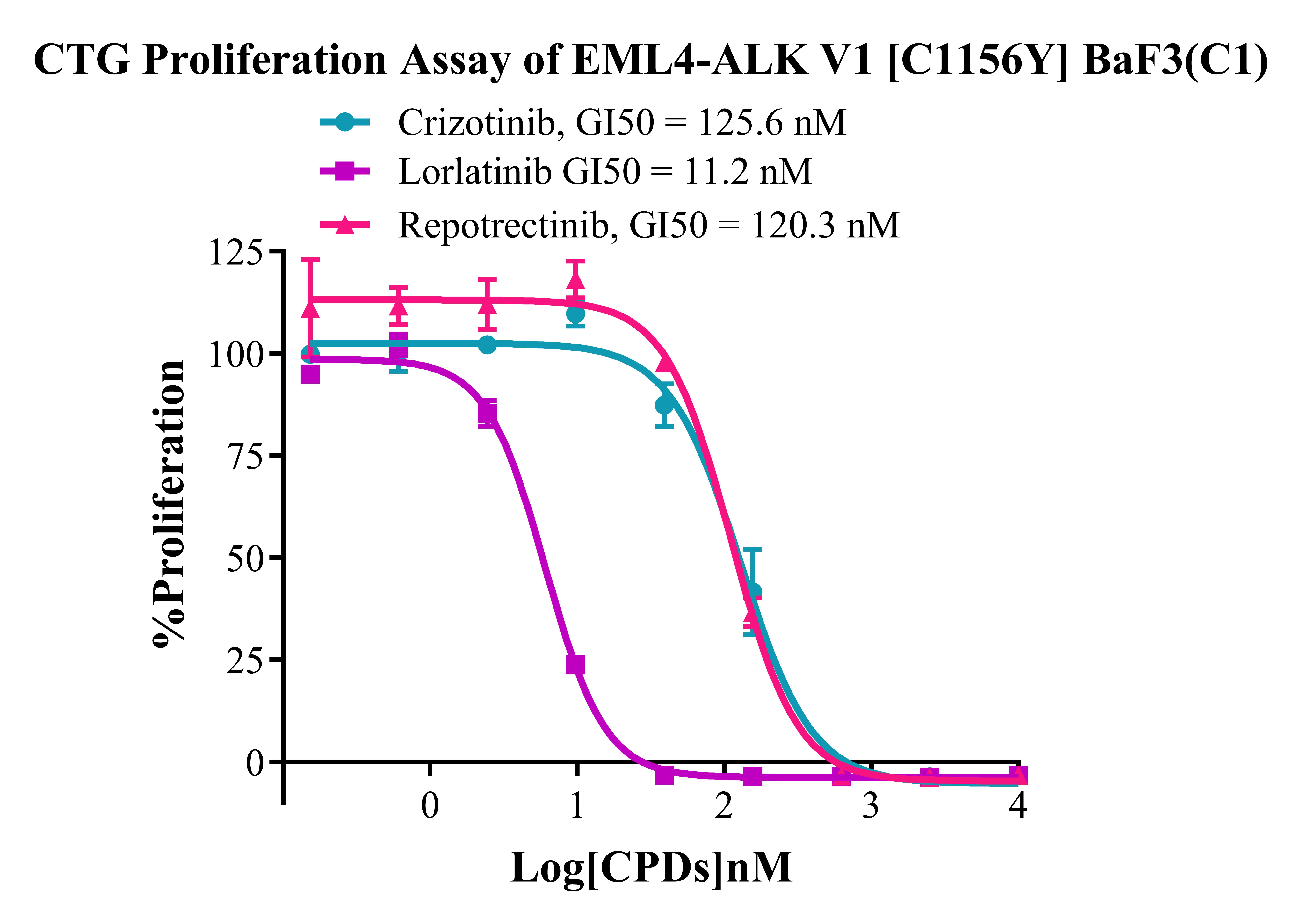 Figure 4. CTG Proliferation Assay of EML4-ALK V1 [C1156Y] BaF3 (C1).  |