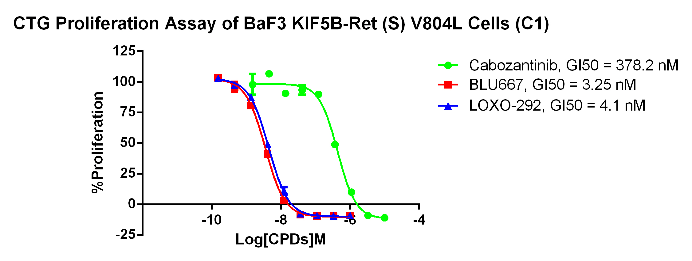 Figure 4.CTG Proliferation Assay of BaF3 KIF5B-Ret (S) V804L Cells (C1).  |