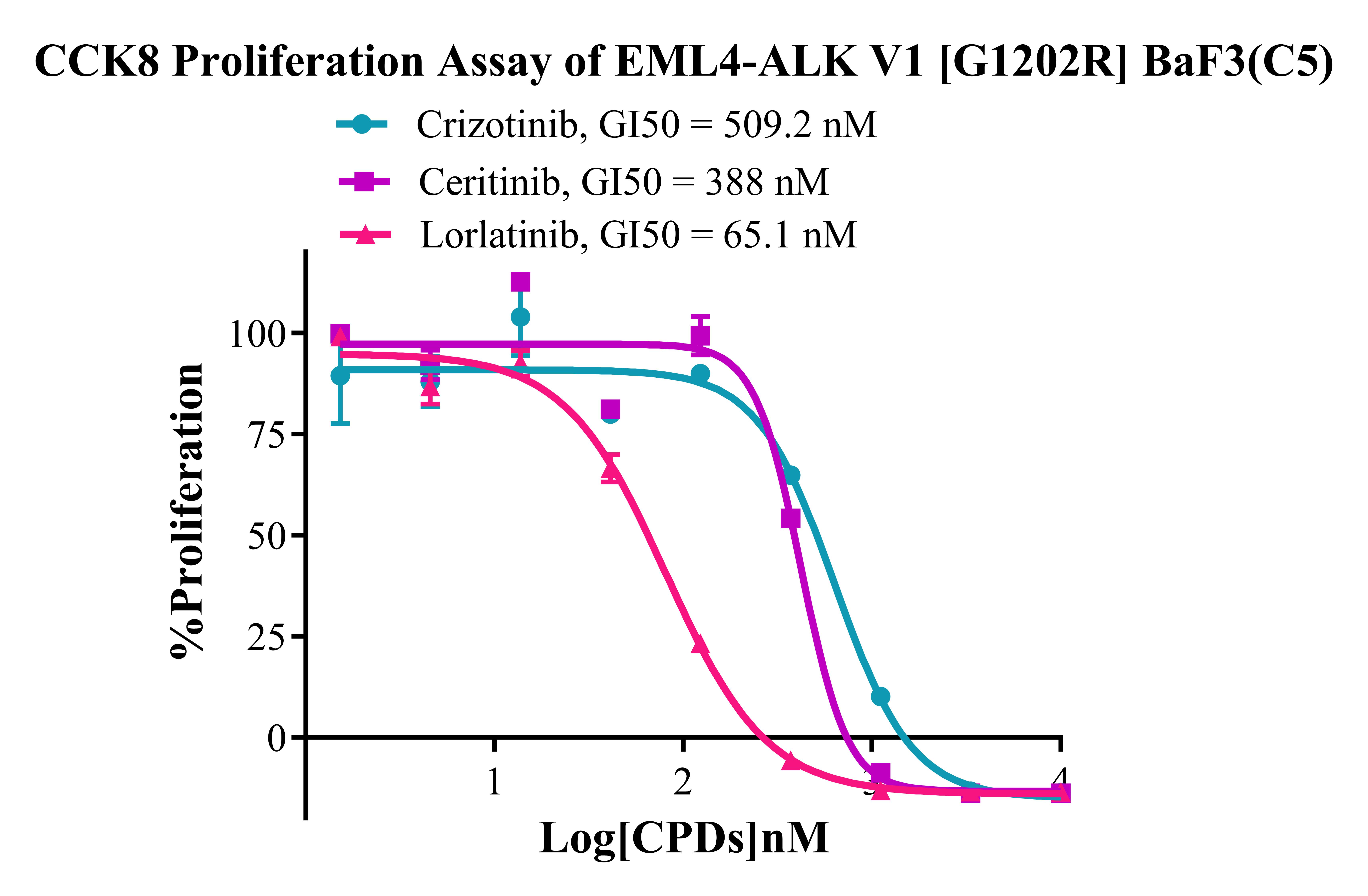 Figure 5. CCK8 Proliferation Assay of EML4-ALK v1 [G1202R] BaF3(C5).  |