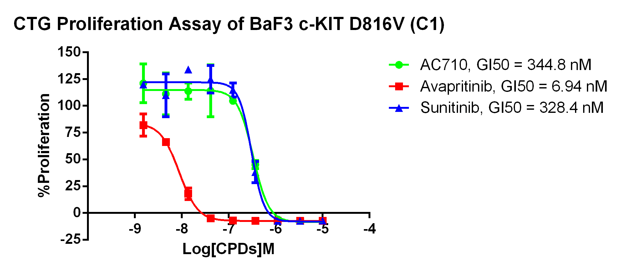 Figure 3. Anti-proliferation assay of three reference compounds on the c-Kit D816V/BaF3.  |