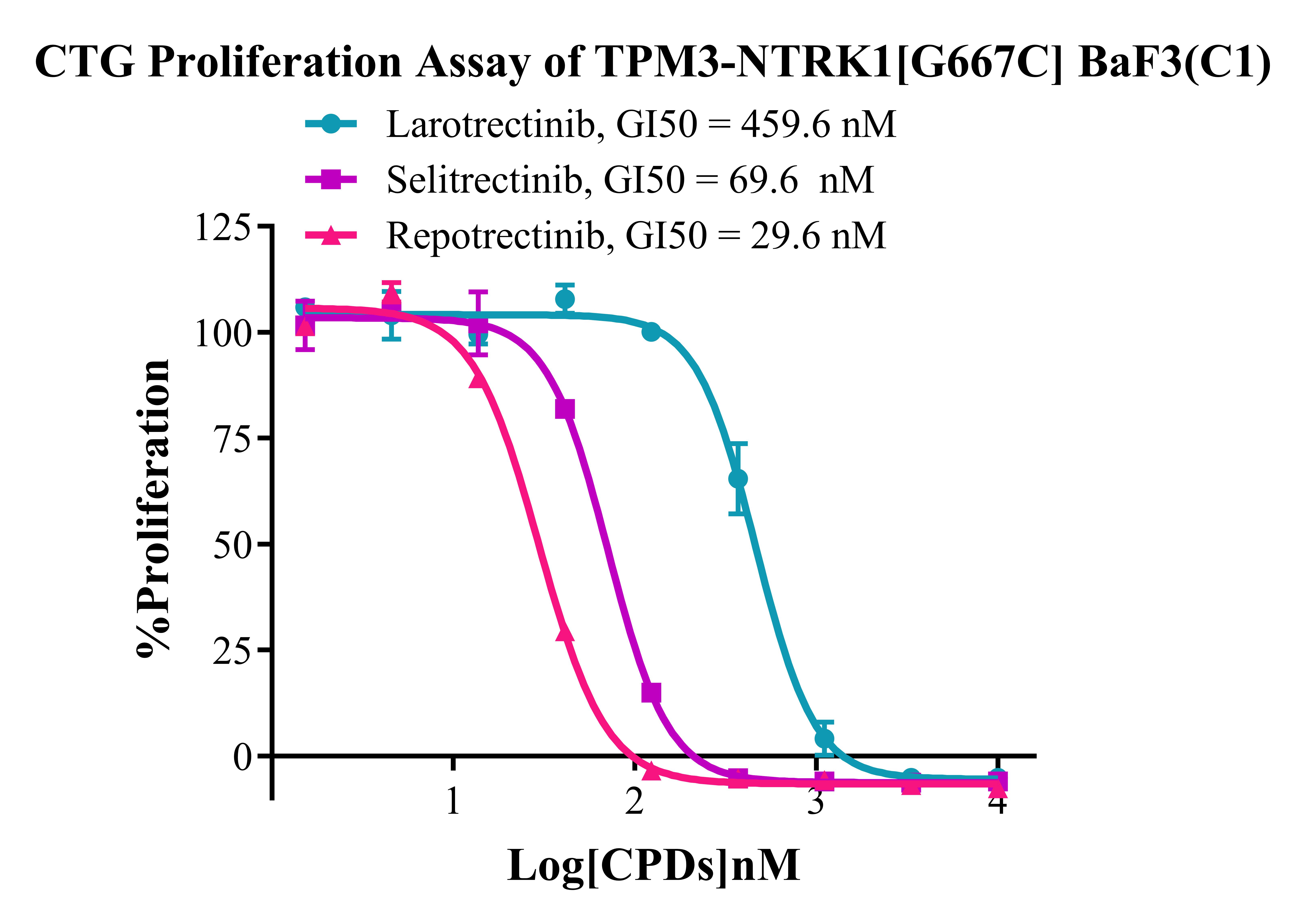 Figure 5. CTG Proliferation Assay of BaF3 TPM3-NTRK1 [G667C] BaF3 (C1).  |