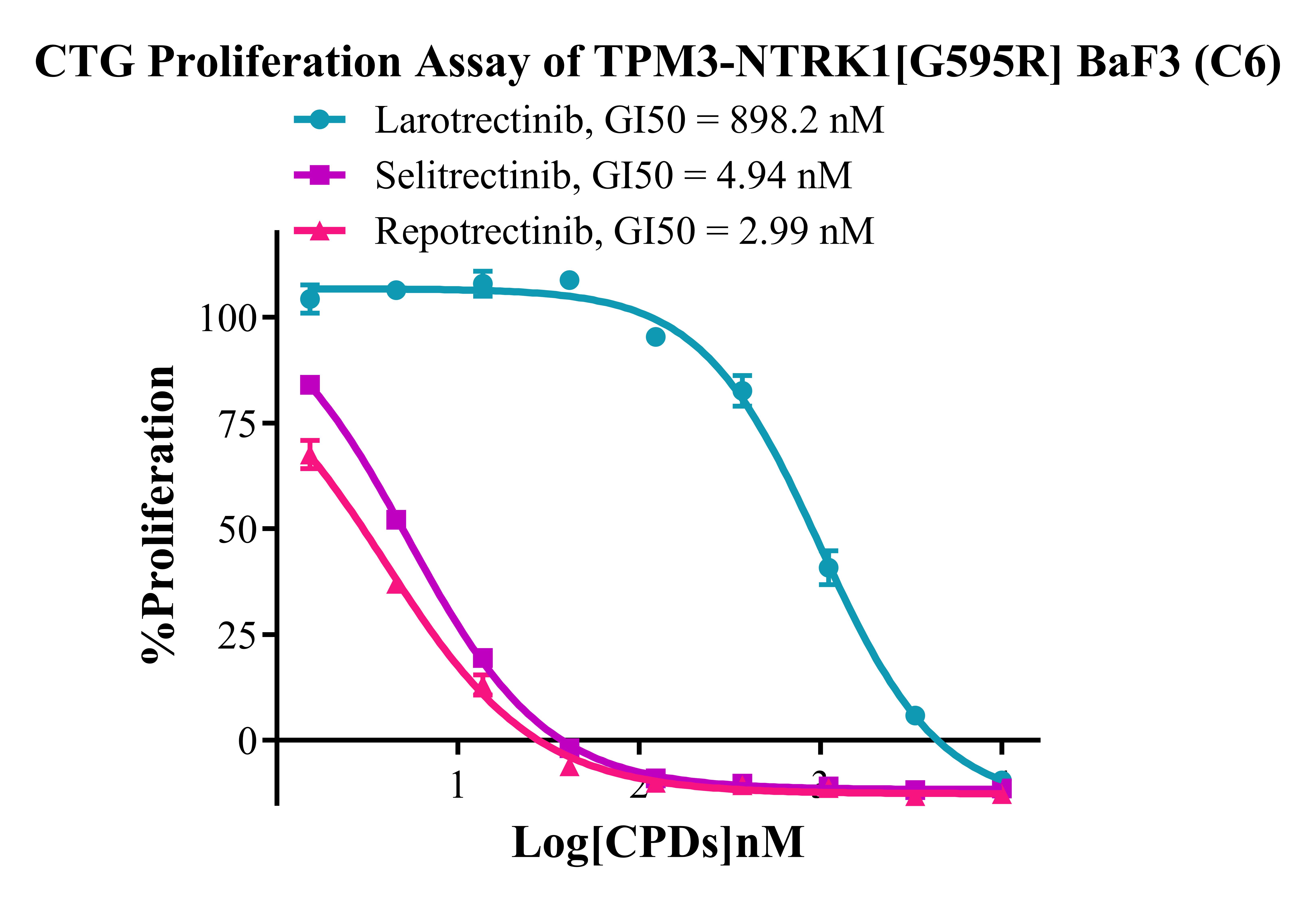 Figure 3. CTG Profliferation Assay of TPM3-NTRK1 [G595R]BaF3(C6).  |