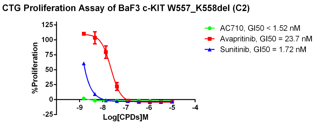 Figure 3. CTG Proliferation Assay of BaF3 c-KIT W557_ K558del (C2).  |