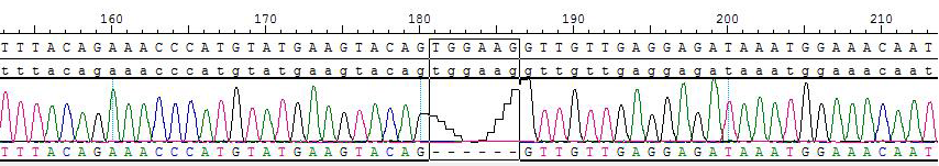 | KIT W557del results in the deletion of an amino acid in the juxtamembrane domain (exon 11) of the Kit protein at amino acids 557 (PMID: 12918066). W557del has not been characterized, however similar Kit exon 11 deletions are activating (PMID: 9438854, PMID: 9797363), and therefore, is predicted to lead to a gain of Kit protein function . | |