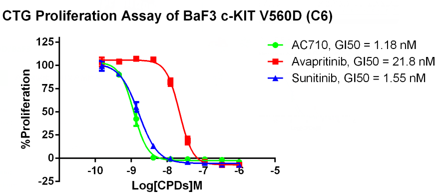 Figure 3. CTG Proliferation Assay of BaF3 C-KIT V560D (C6).  |