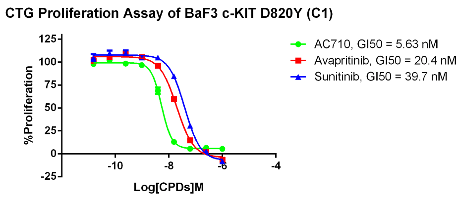 Figure 3. CTG Proliferation Assay of BaF3 c-KIT D820Y (C1).  |