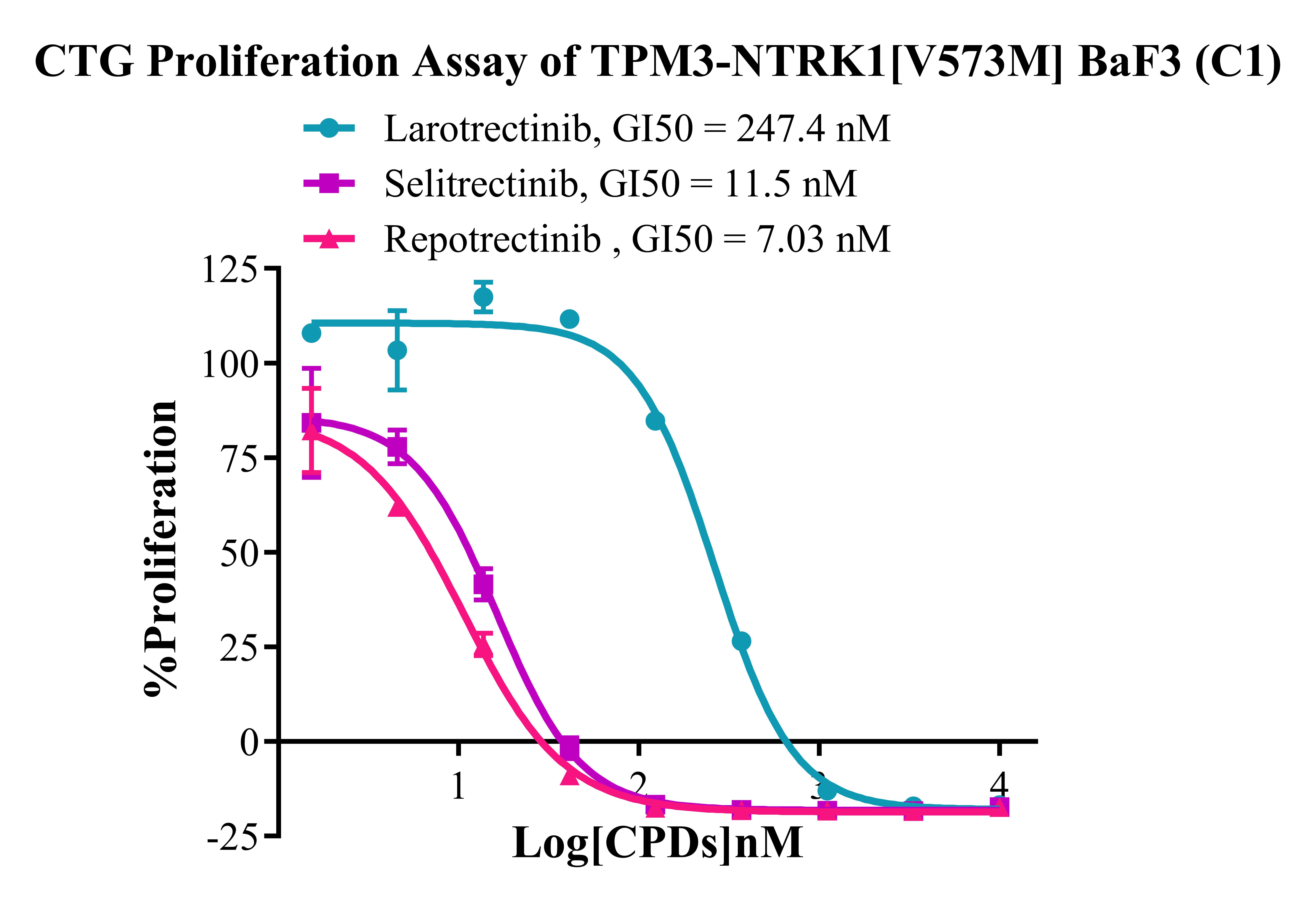 Figure 2. CTG Proliferation Assay of TPM3-NTRK1 [V573M] BaF3(C1).  |