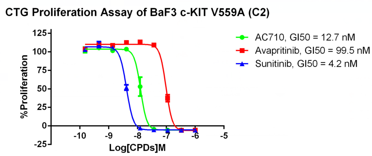 Figure 2. CTG Proliferation Assay of BaF3 c-KIT V559A (C2).  |
