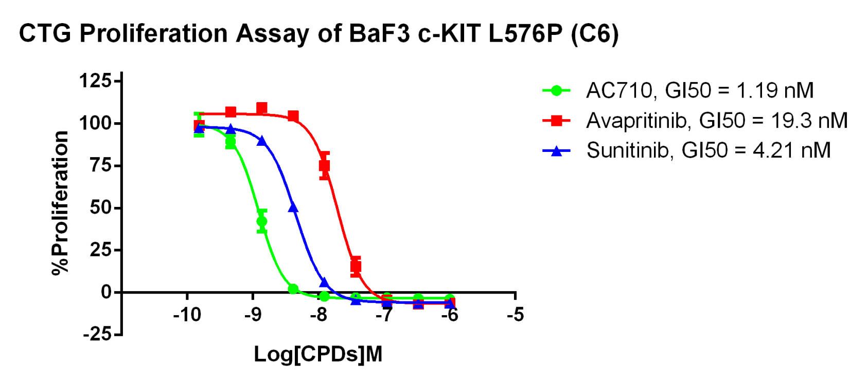 Figure 3. CTG Proliferation Assay of BaF3 c-KIT L576P (C6).  |