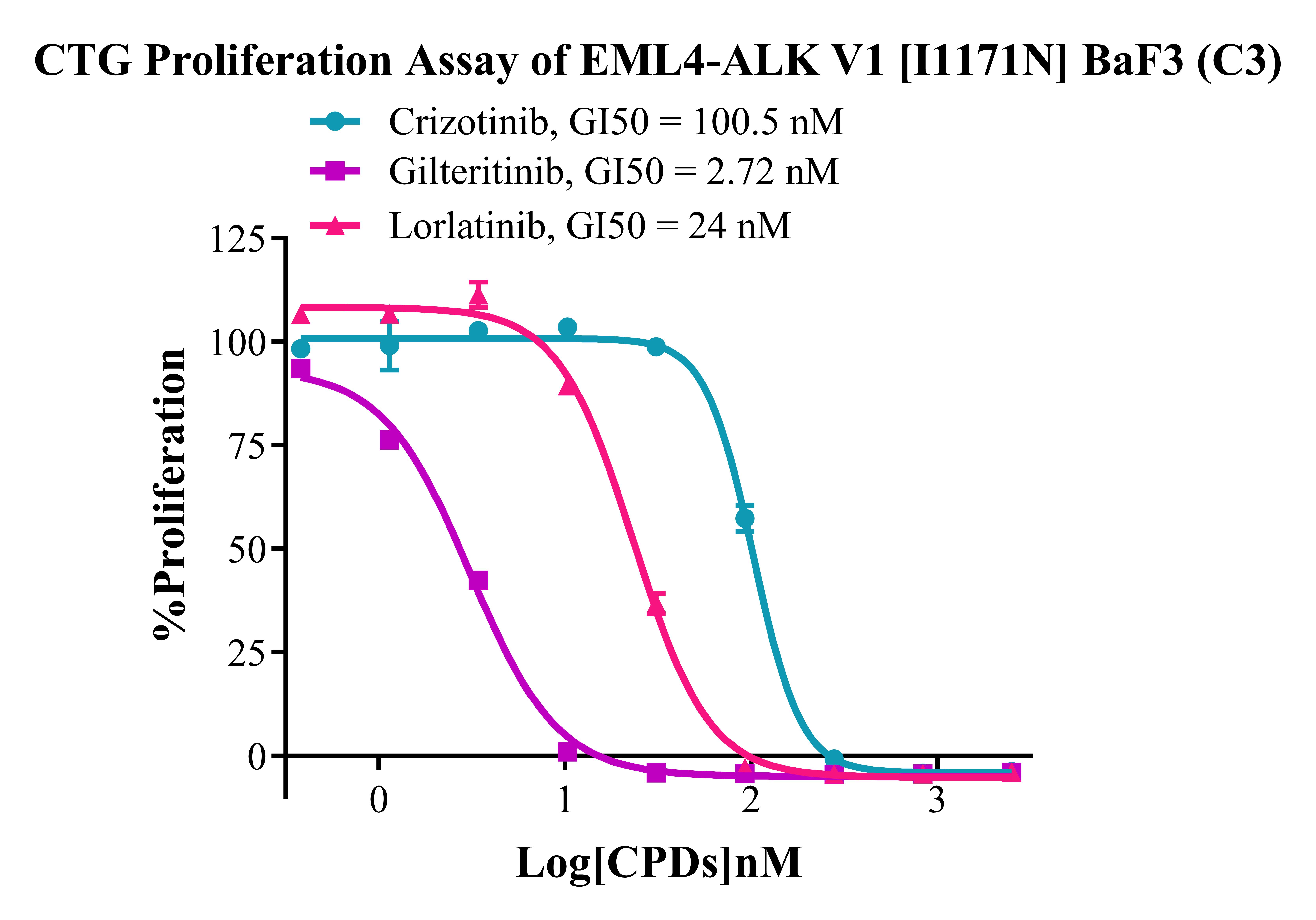 Figure 5. CTG Proliferation Assay of EML4-ALK V1 I1171N BaF3(C3).  |