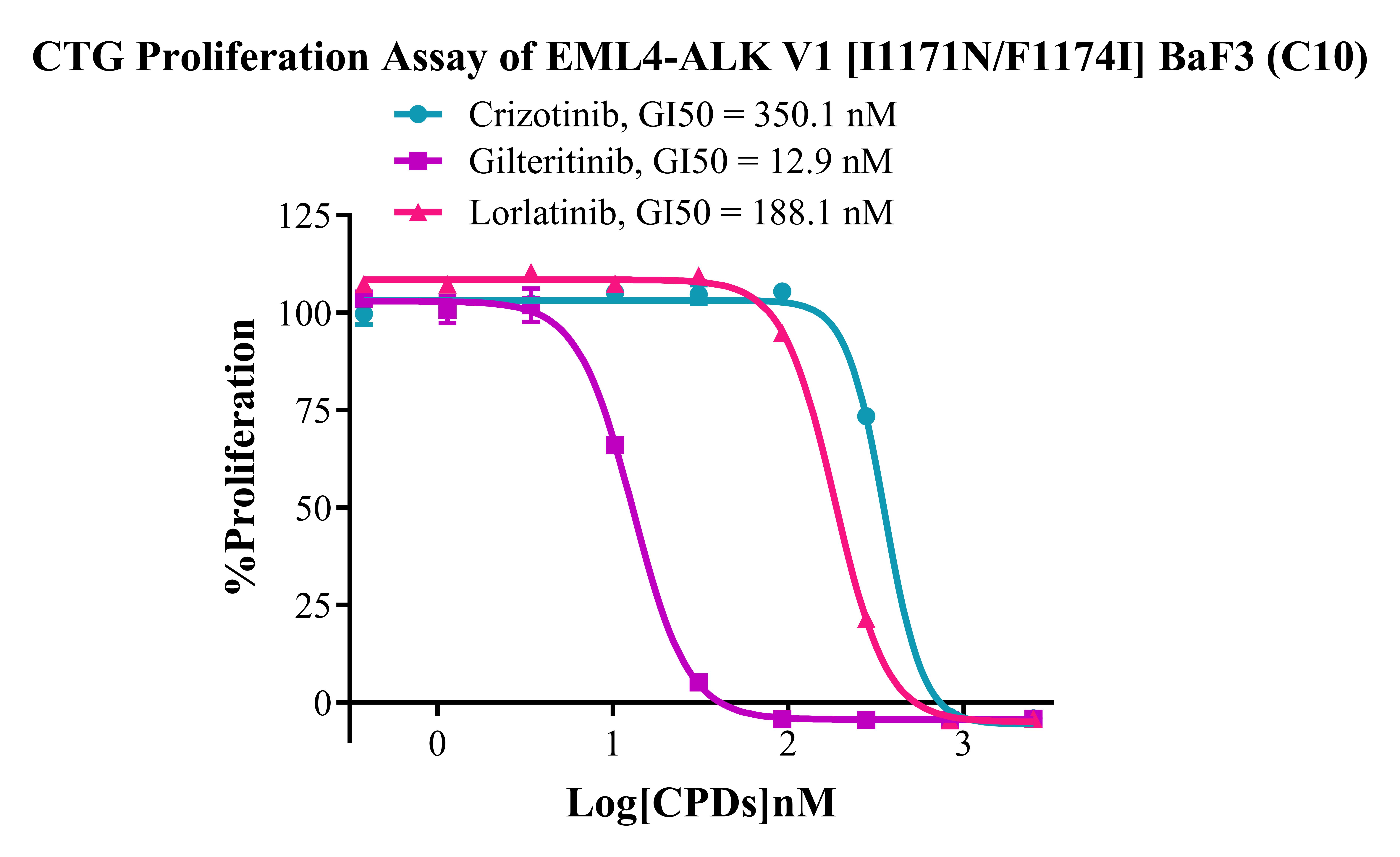 Figure 6. CTG Proliferation Assay of EML4-ALK V1 I1171N/F1174I BaF3(C10).  |