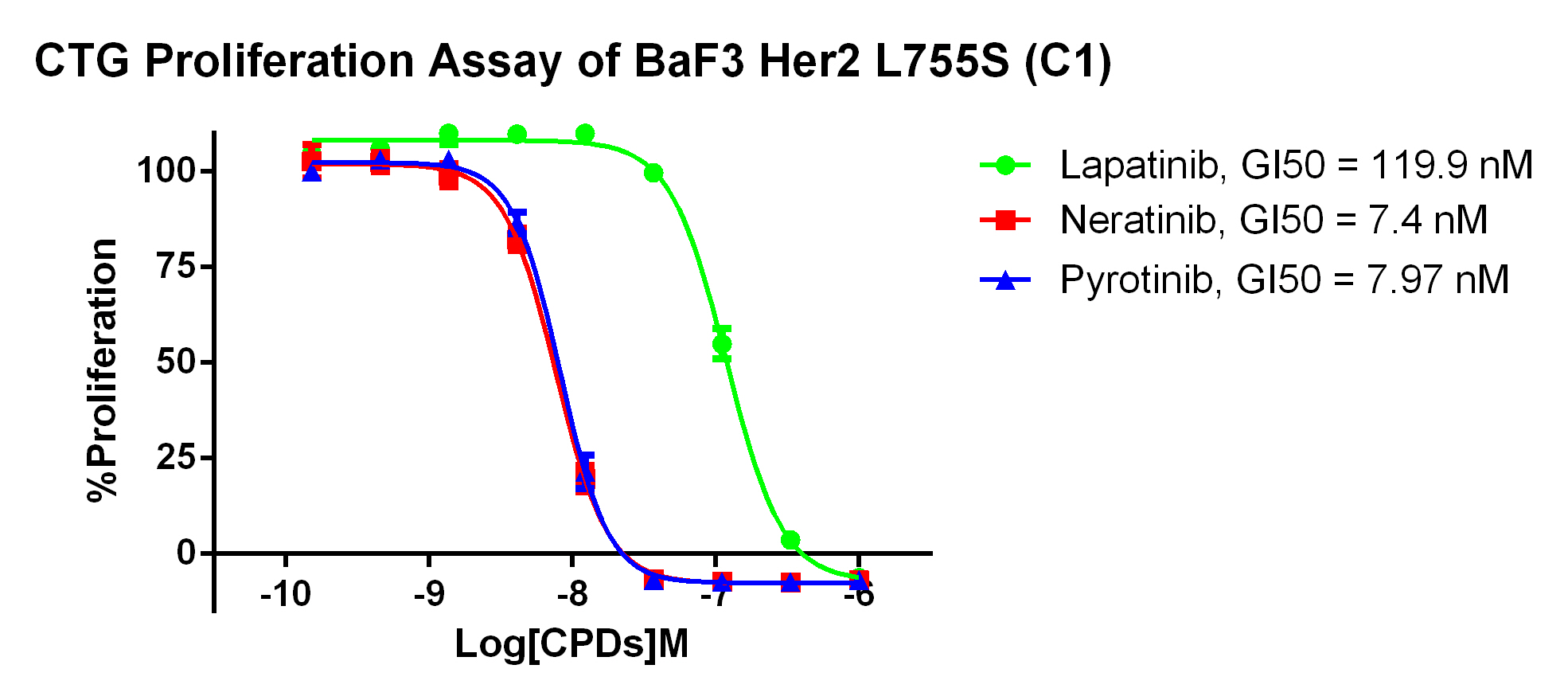 Figure 2. CTG Proliferation Assay of BaF3 Her2 L755S (C1).  |