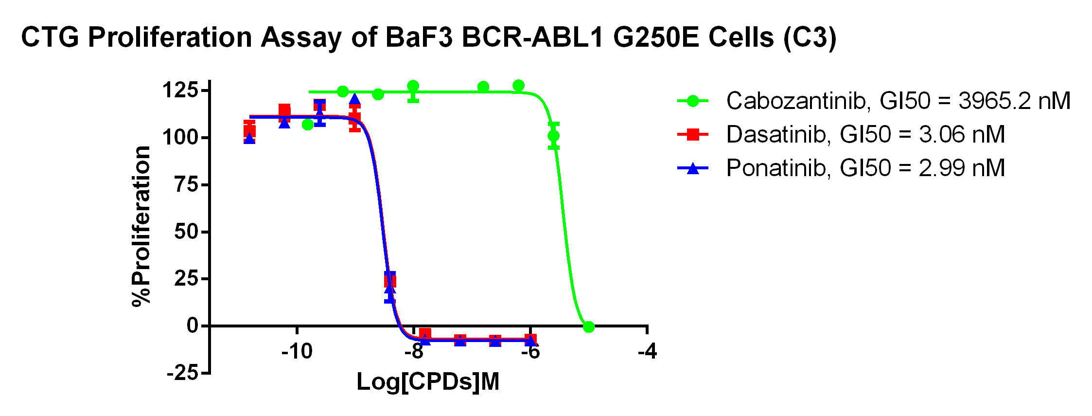 Figure 4. CTG Proliferation Assay of BaF3 BCR-ABL1 G250E Cells (C3).