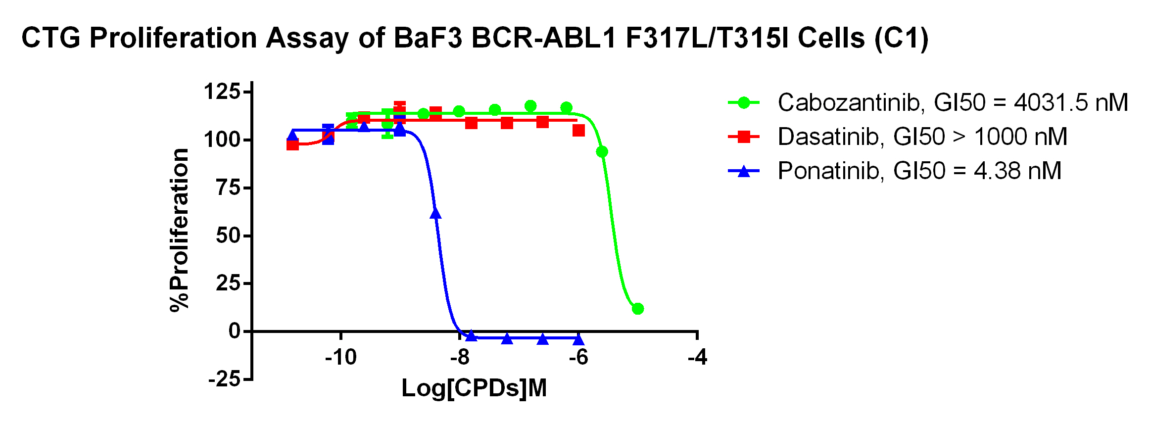 Figure 4. CTG Proliferation Assay of BaF3 BCR-ABL1 F317L/T315I Cells (C1).  |