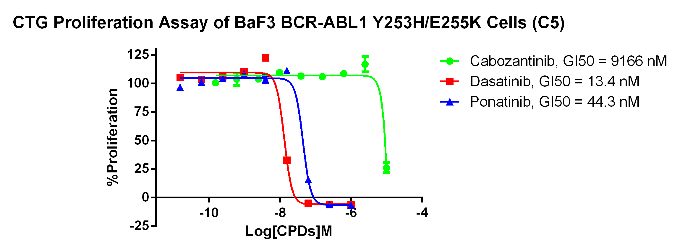 Figure 3. CTG Proliferation Assay of BaF3 BCR-ABL1 Y253H/E255K Cells (C5).  |