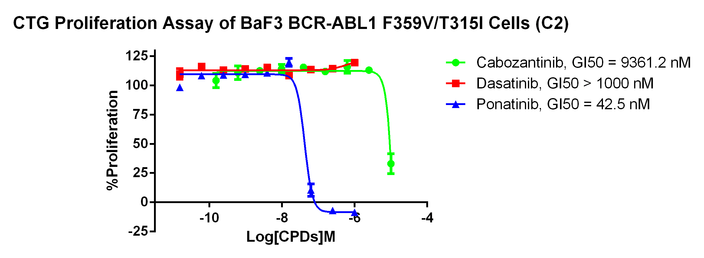 Figure 5. CTG Proliferation Assay of BaF3 BCR-ABL1 F359V/T315I Cells (C2).