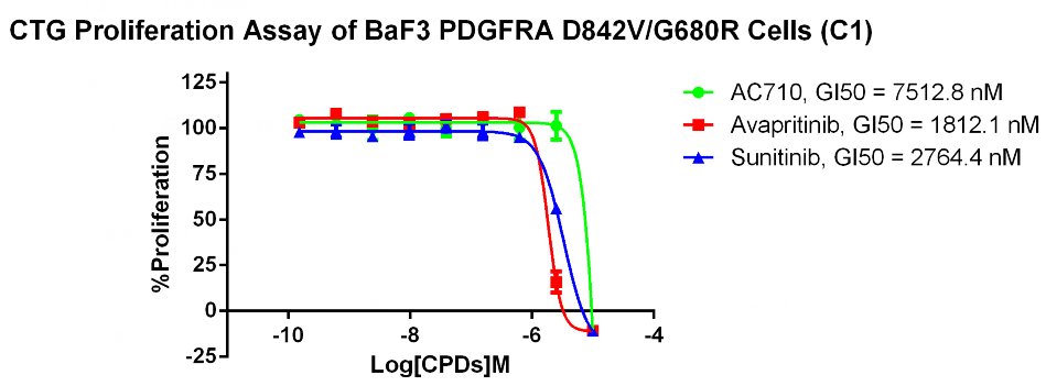 Figure 3. CTG Proliferation Assay of BaF3 PDGFRA D842V/G680R Cells (C1).  |