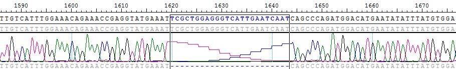 1.Sanger of PDGFRA V658A-R558_I565del/Baf3