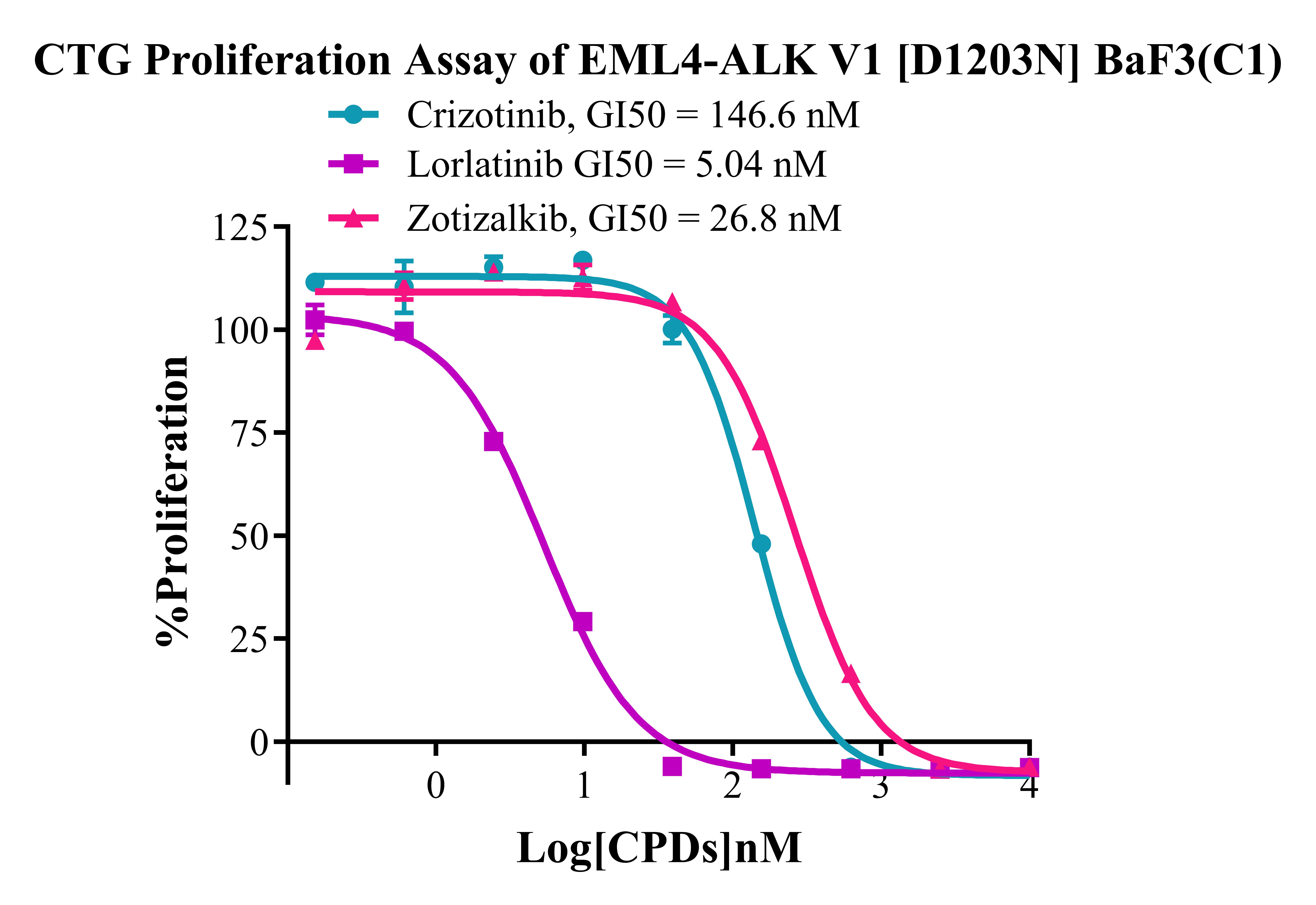 Figure 4. CTG Proliferation Assay of EML4-ALK V1 [D1203N] BaF3(C1).  |
