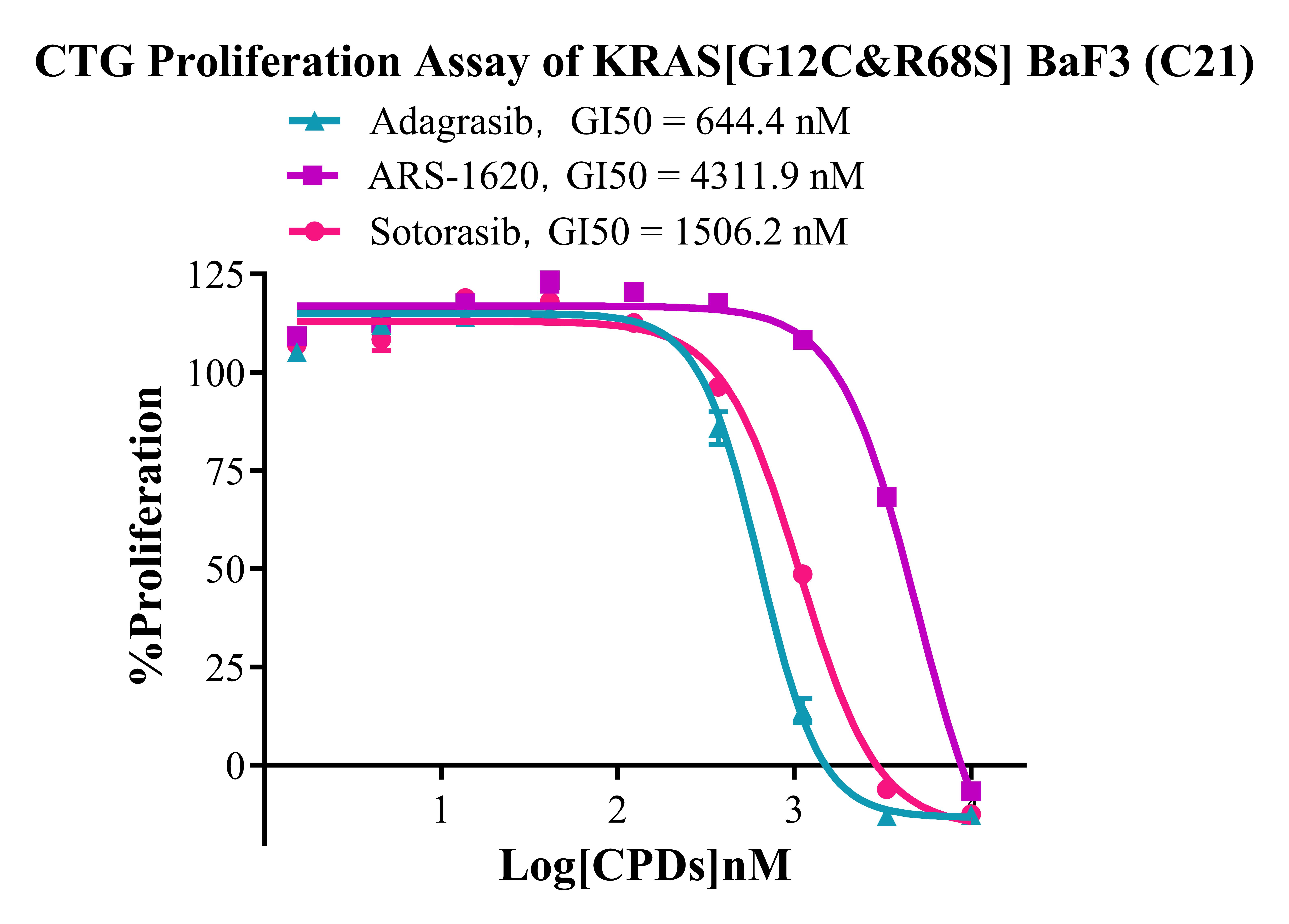 Figure 3. CTG Proliferation Assay of KRAS[G12C&R68S] BaF3 (C21).  |