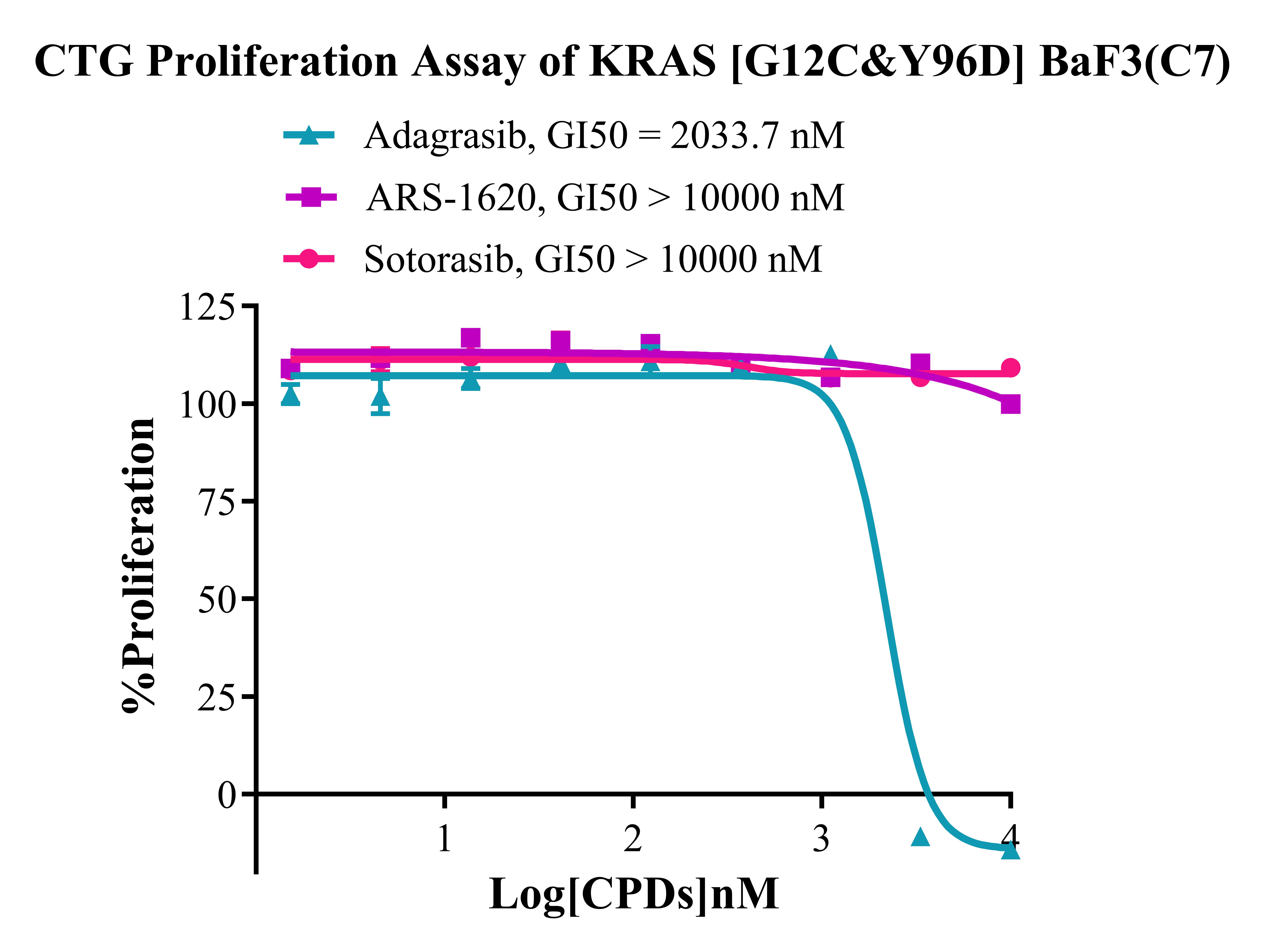 Figure 3. CTG Proliferation Assay of KRAS[G12C&Y96D] BaF3(C7).  |
