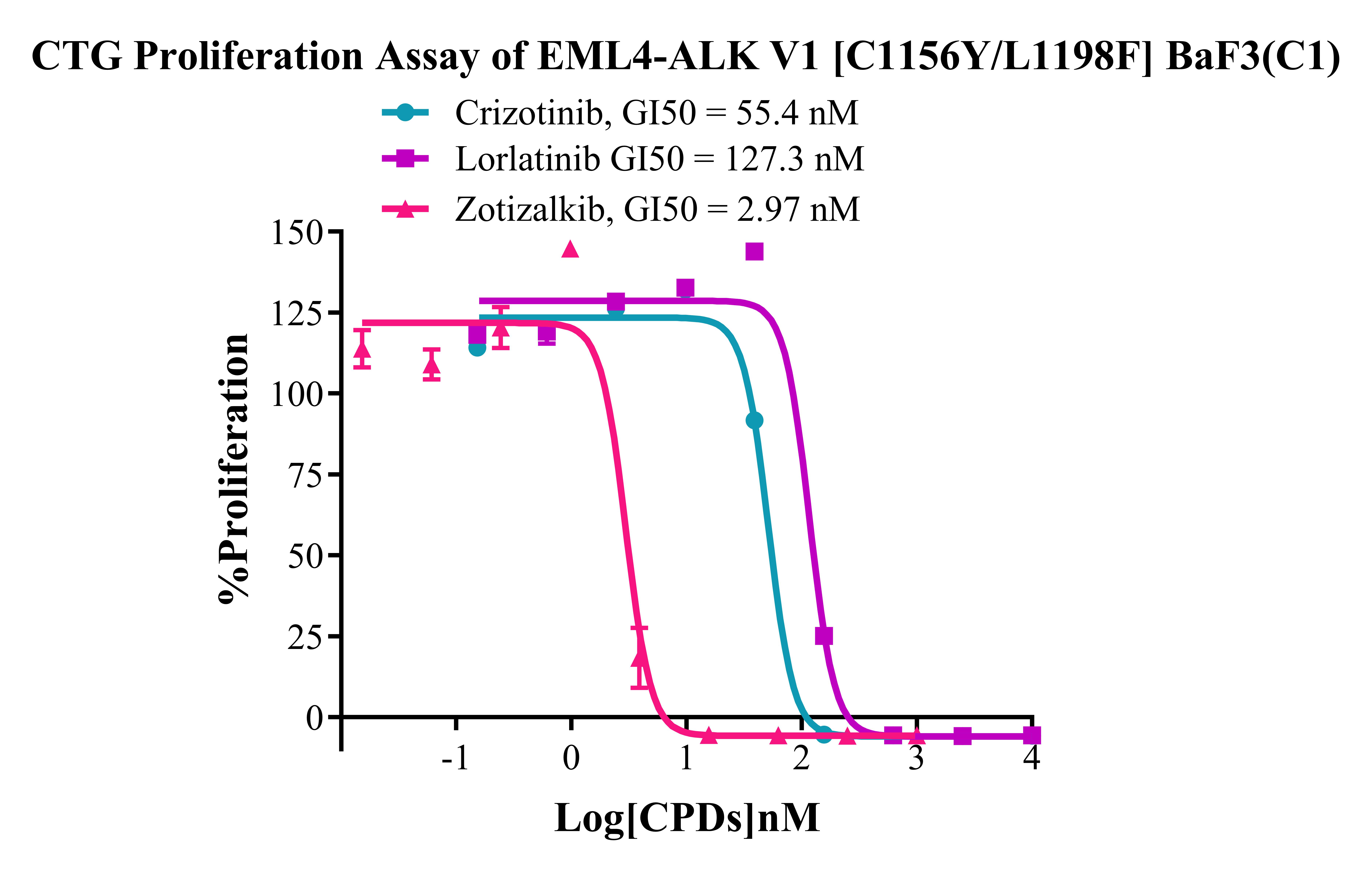 Figure 5. CTG Proliferation Assay of EML4-ALK V1 [C1156Y/L1198F] BaF3(C1).  |