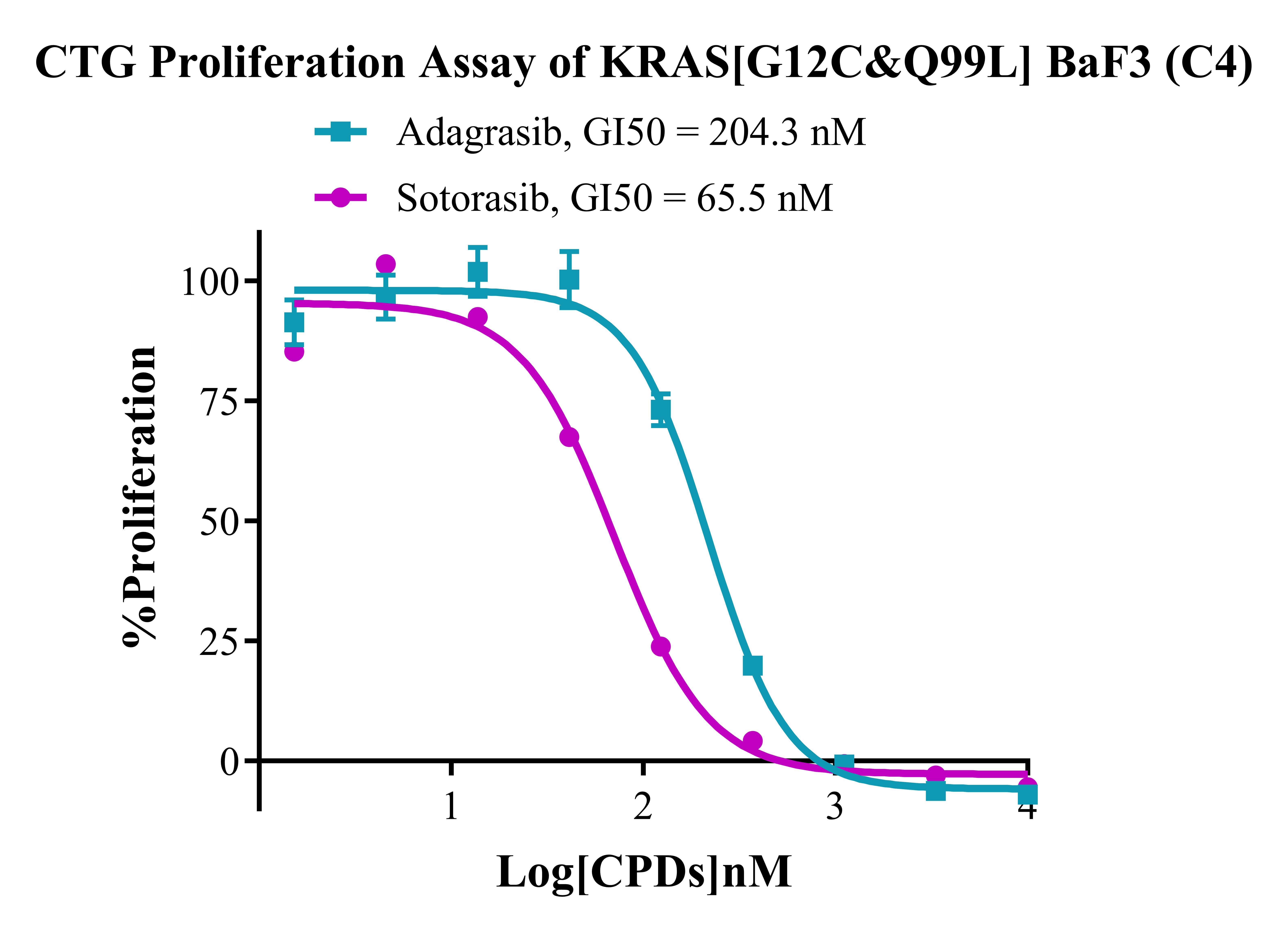 Figure 3. CTG Proliferation Assay of KRAS[G12C&Q99L] BaF3(C4).  |