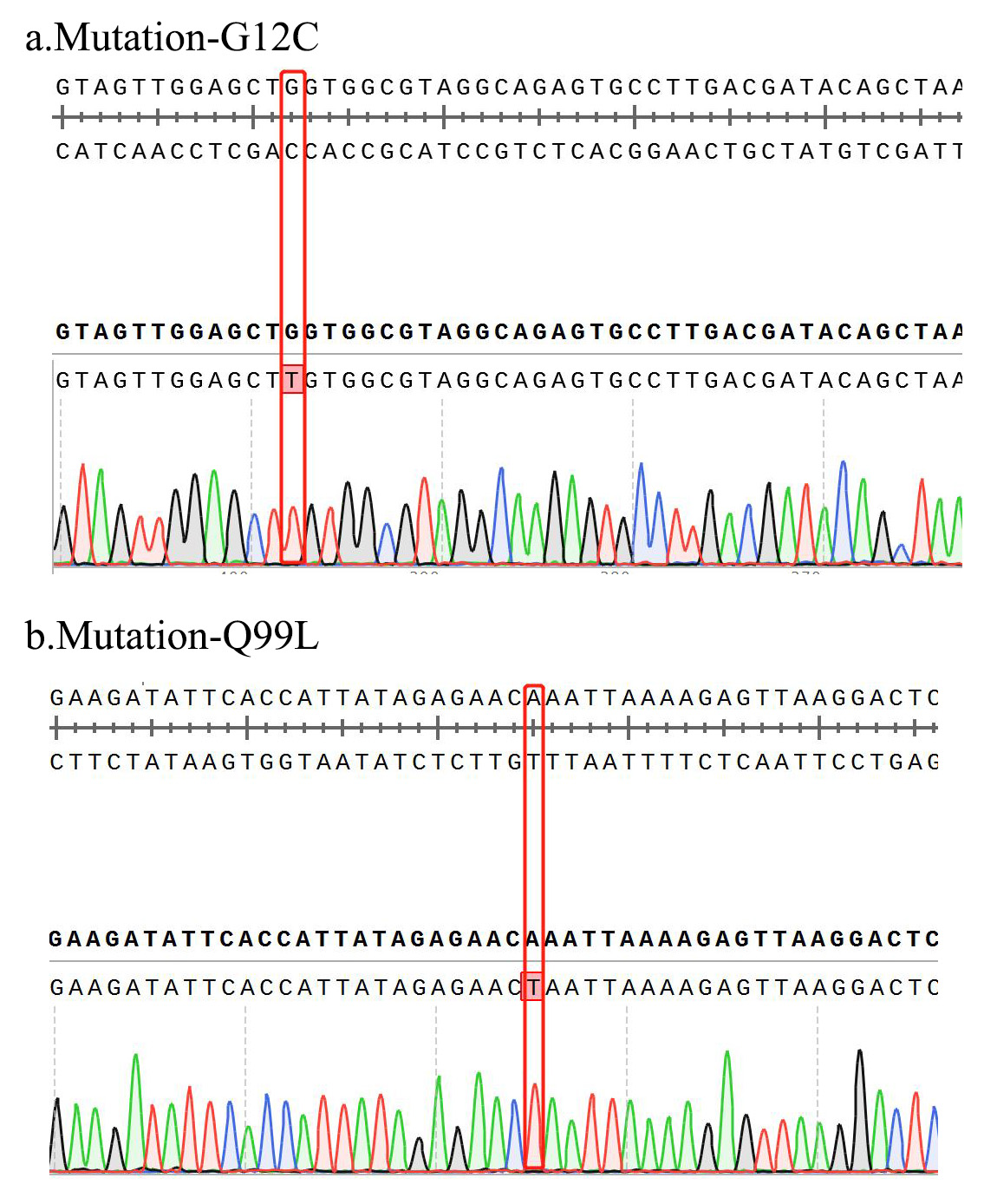 1.Sanger of KRAS[G12C&Q99L] BaF3 Figure 2. Sanger of KRAS[G12C&Q99L] BaF3  |