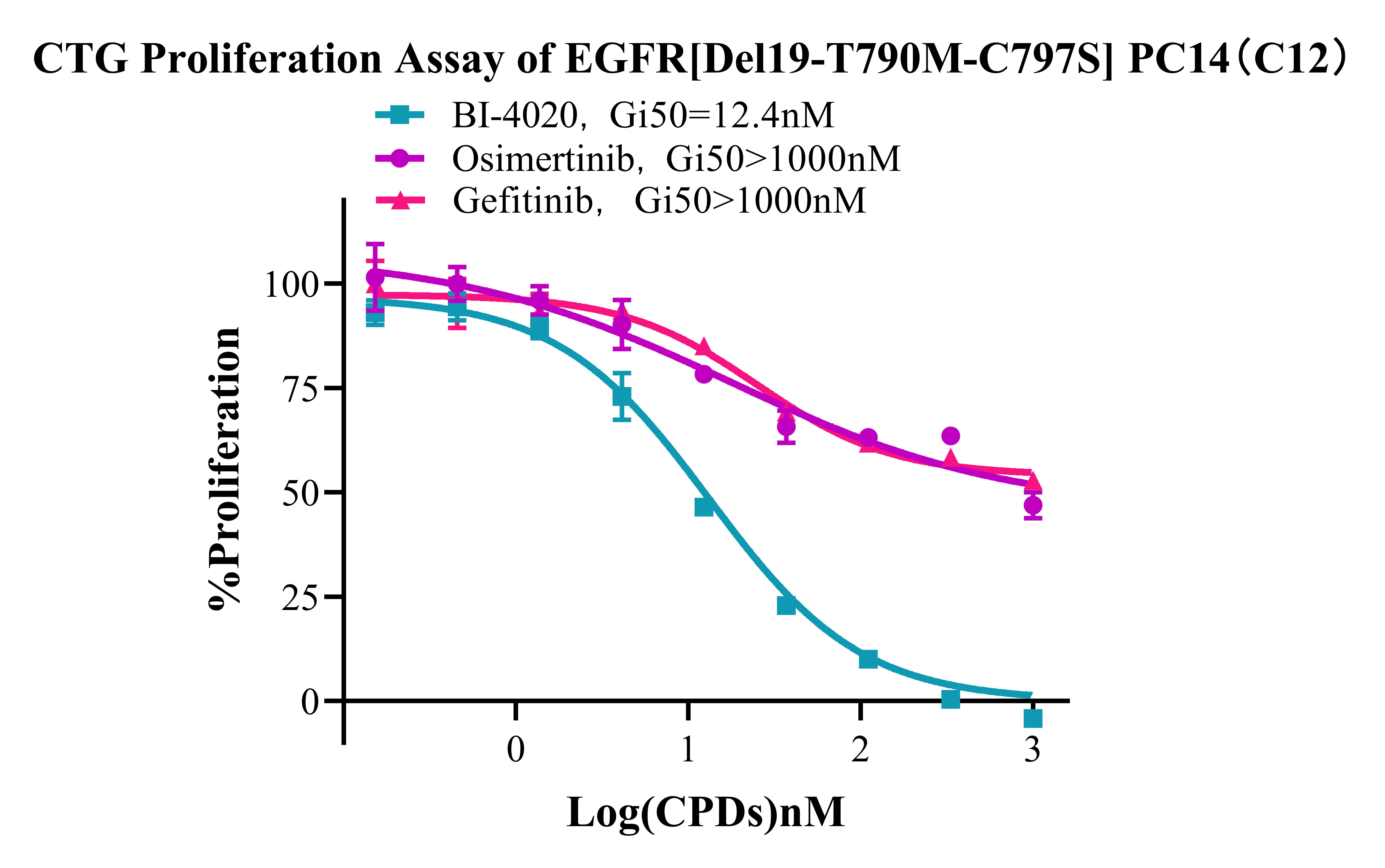 Figure 2. CTG Proliferation Assay Of EGFR Del19/T790M/C797S-PC14 Cells (C12).  |