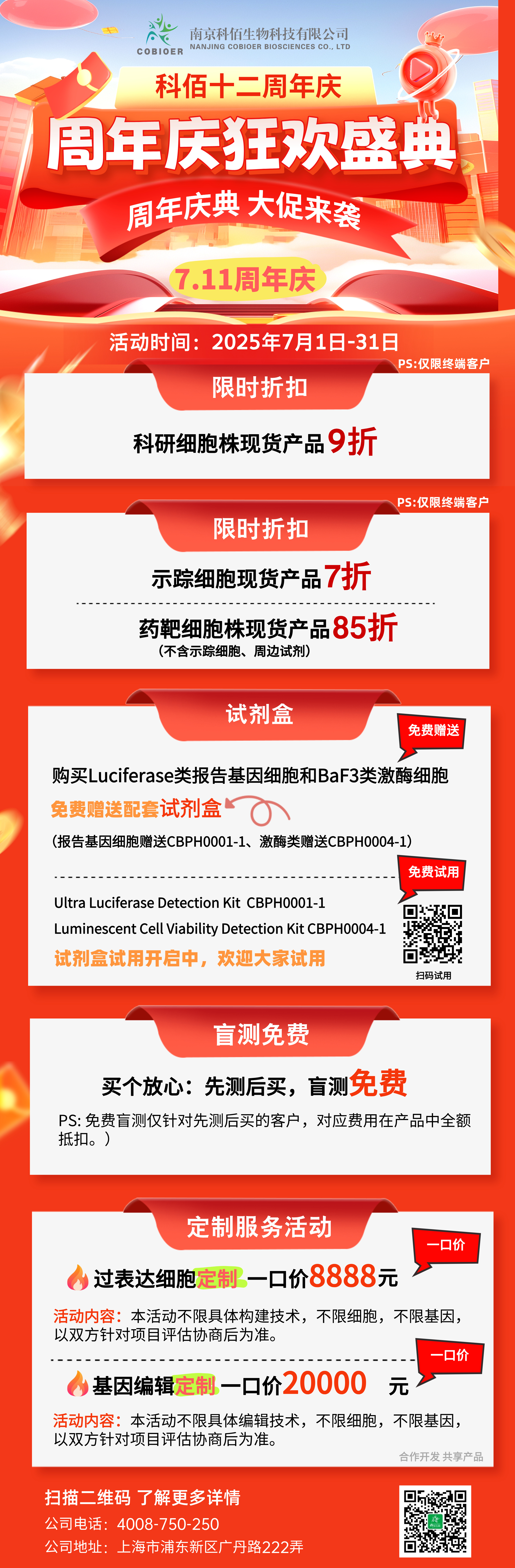 【周年慶狂歡】科佰十二周年慶,藥靶細胞系列產(chǎn)品,大促來襲