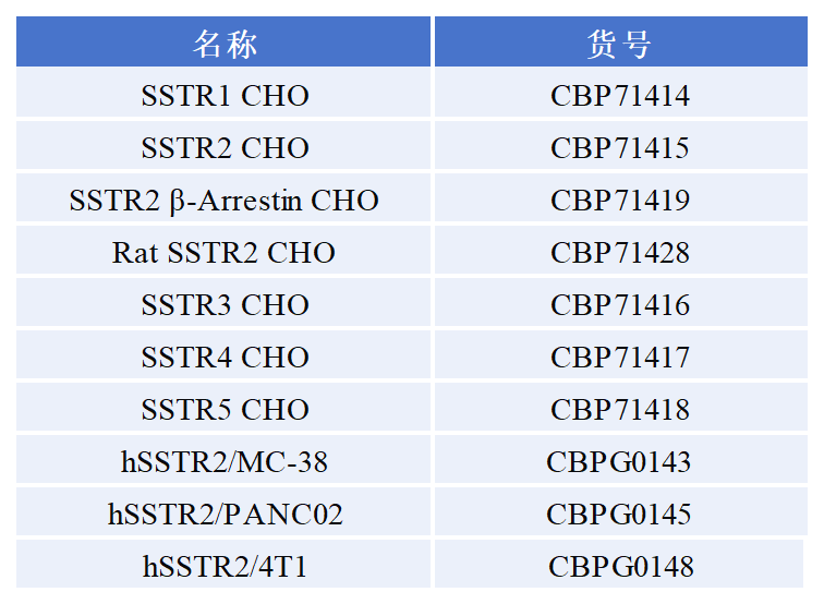 生長(zhǎng)抑素受體(Somatostatin receptor,SSTRs)是 GPCR 超家族中的Class A家族的成員,共有 5 種亞型,分別為SSTR1-SSTR5,其中SSTR2是唯一一種有SSTR2a和SSTR2b這2種異構(gòu)體的SSTR亞型受體蛋白。SSTR2廣泛分布于正常組織中,如腦下垂體、胰島、腎上腺、胸腺、胃腸道以及免疫系統(tǒng)等,在不同受體的組織,表達(dá)譜各不相同。SSTR2 在神經(jīng)母細(xì)胞瘤、垂體腺瘤、黑色素瘤、甲狀腺癌以及許多神經(jīng)內(nèi)分泌腫瘤中高表達(dá)。