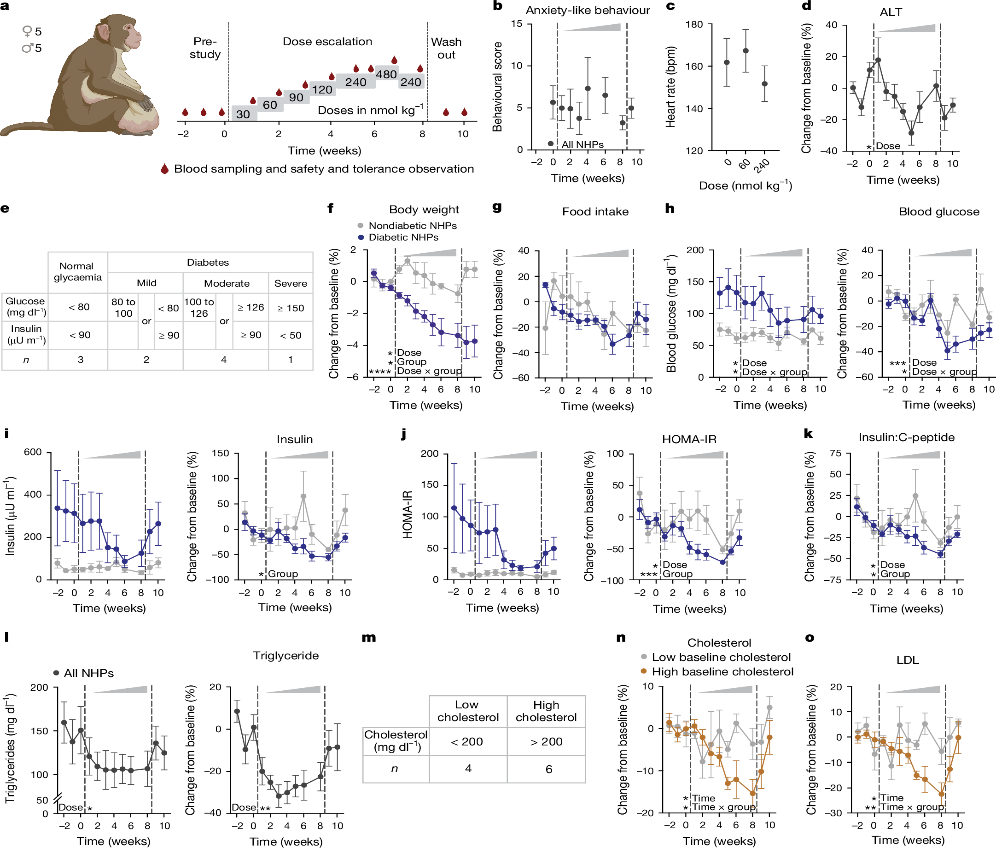 在患有心臟代謝疾病的肥胖的恒河猴中,NK2R激動(dòng)劑顯著降低了體重、血糖、甘油三酯和膽固醇水平,并改善了胰島素抵抗,這些結(jié)果表明NK2R激動(dòng)劑在非人靈長(zhǎng)類(lèi)動(dòng)物中也具有潛在的治療潛力。