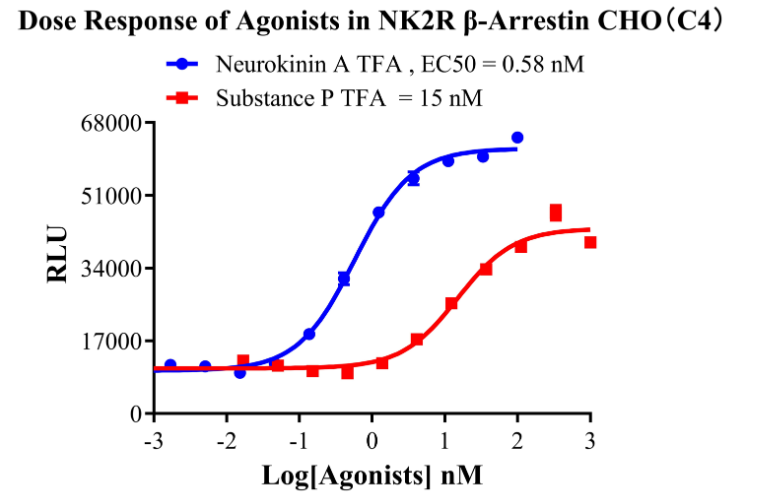 為了助力NK2R藥物的研發(fā),科佰生物及時(shí)開(kāi)發(fā)了基于IP-One信號(hào)通路的NK2R細(xì)胞模型和基于β-Arrestin信號(hào)通路的細(xì)胞模型,用于候選藥物早期機(jī)理研究。