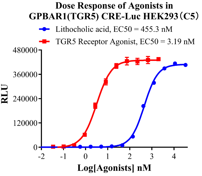 為了助力TGR5藥物的研發(fā),科佰生物及時開發(fā)了基于CREB/cAMP信號通路的TGR5細(xì)胞模型,用于候選藥物早期機理研究。